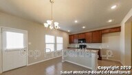 Beautiful 1,974 sq. ft. 2-story home with 2 car garage, granite counters, sprinklers, water softener, covered patio, backs up to a greenbelt, walking distance of Masters Elementary. Only one mile to I-10 and 10 minutes to Randolph AFB and 20 from Ft. Sam. The master plan community has a community pool and park with walking trails. Very open floor concept plan features a large living area that is adjacent to the kitchen with a oversized island.