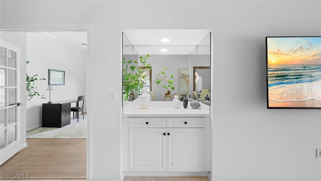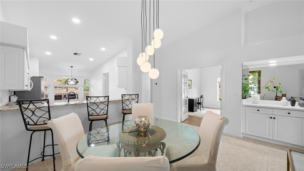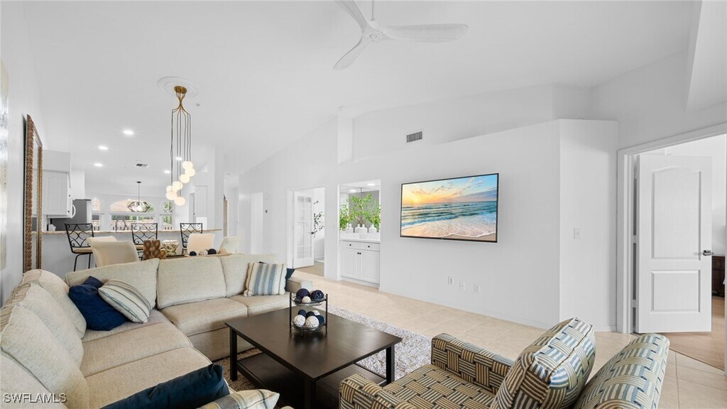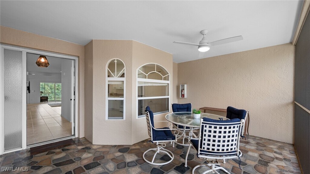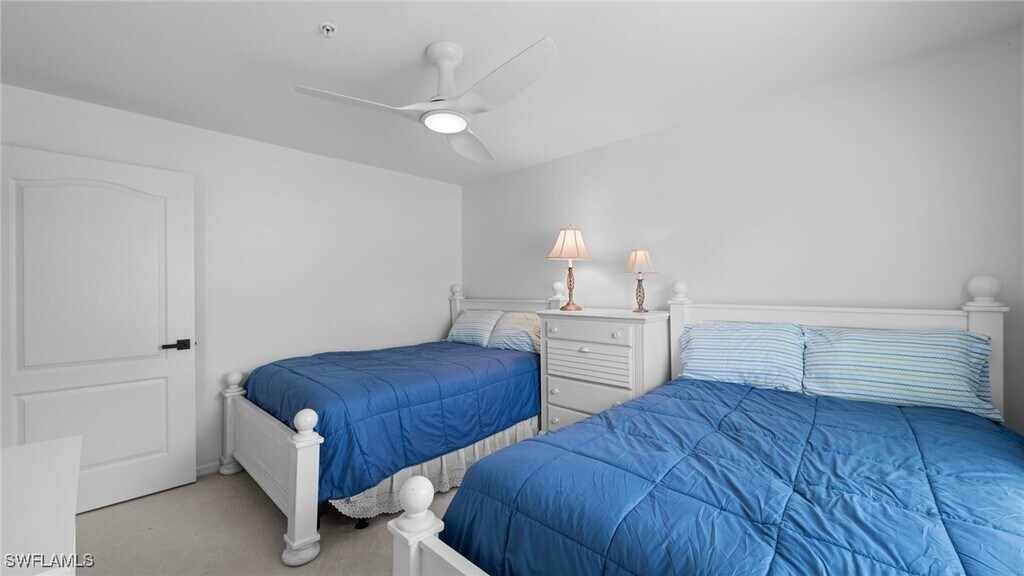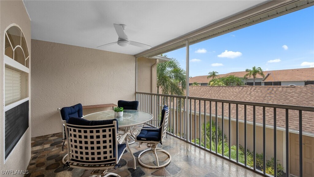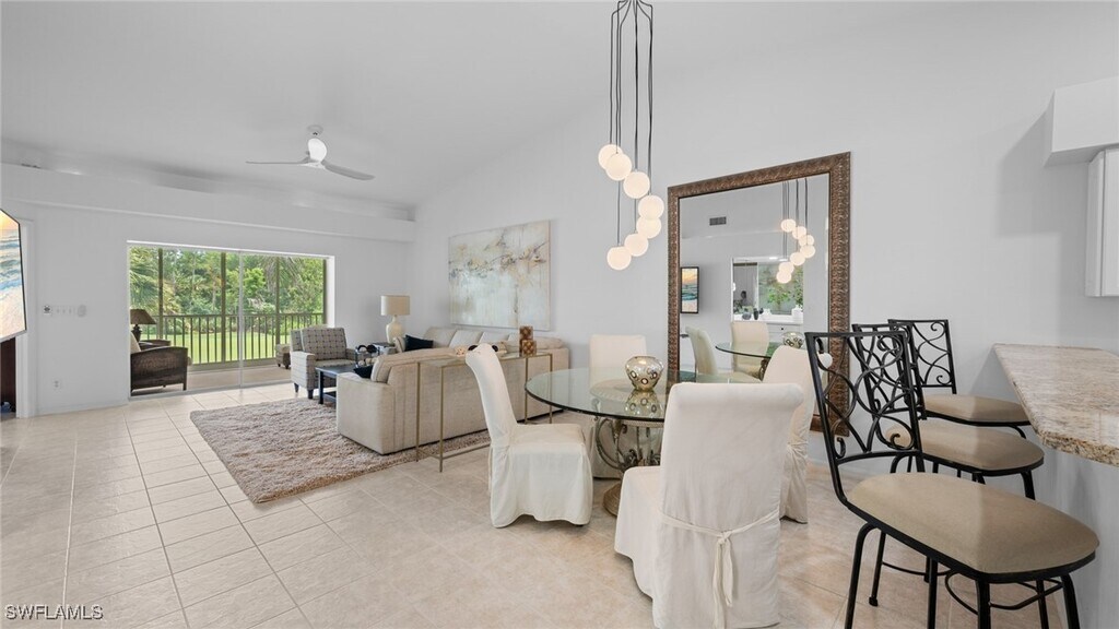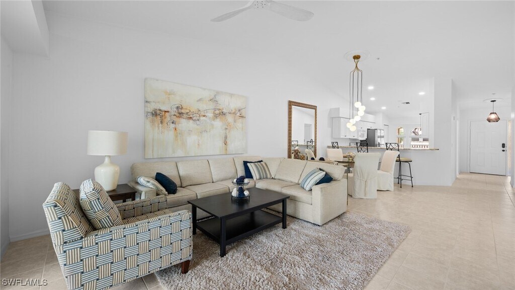 Nestled in a serene community,this exquisite 2nd floor condominium offers a light and bright ambiance,soaring high ceilings,and an open floor plan. The heart of this home is the fully equipped kitchen,complete with ample counter space,and small morning room table. The open floor plan seamlessly connects the dining area and living room,creating an ideal setting for entertaining or relaxing. The dining area comfortably accommodates 4,making it perfect for family gatherings. The living room features a large TV,perfect for cozy movie nights or enjoying your favorite shows in style. The den comes complete with a desk,providing a quiet nook for productivity or study,while still being part of the home’s inviting atmosphere. Retreat to your generous primary bedroom,designed for rest and relaxation. This sanctuary features a king-sized bed,a TV for your entertainment,and a walk-in closet that offers ample storage. The ensuite bathroom boasts both a shower and a luxurious tub,ensuring your bathing experience is nothing short of a spa day. Your guests will feel right at home in the second bedroom,furnished with two double beds,and conveniently located near the guest bathroom,ensuring privacy and comfort for everyone. Step outside to your cozy sitting area on the back lanai,where you can unwind and soak in the stunning views of the golf course,lake,and natural preserves or use your front lanai to enjoy al fresco dining at the table provided,perfect for enjoying your morning coffee or evening meals. Highland Woods boasts top-tier amenities,including an 18-hole championship golf course,three bocce courts,four tennis courts,a large community pool with cabana,a state-of-the-art fitness center,and a beautiful clubhouse. The Grille provides sweeping views of the 18th green,offering a perfect spot to relax with friends and enjoy a meal or drink. Located in sunny Southwest Florida,you’re just a short drive from the Promenade of Bonita Springs,Coconut Point Mall,the Shops at Mercato,and the stunning Gulf of America. This property seamlessly combines luxury,comfort,and an unbeatable location for a truly relaxed,upscale lifestyle.