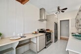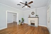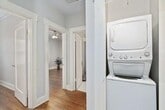 Beautifully preserved 1920's duplex is a 2 bdrm 1 bath charmer with a modern flair; preserved hardwood floors throughout except for bathroom and kitchen, large windows allow the sunlight in to brighten the home; a decorative fireplace graces the living room and the formal dining room is open and generous; the galley style kitchen has been updated to include a spacious counter bar that can become a favorite breakfast area or workspace; food preparation space and cabinetry is abundant with refrigerator, gas range, and dishwasher included; the utility closet houses a stackable washer and dryer for your convenience; the backyard carport is shared with the tenant in Unit B and Unit A tenant has access to one carport space; the treed backyard makes for a pleasant sitting area with shade; the front porch is also a shared space with tenant in Unit B. You will enjoy the ease and vibe of this Ryan Place duplex nestled amongst Fort Worth's historic Baron homes.