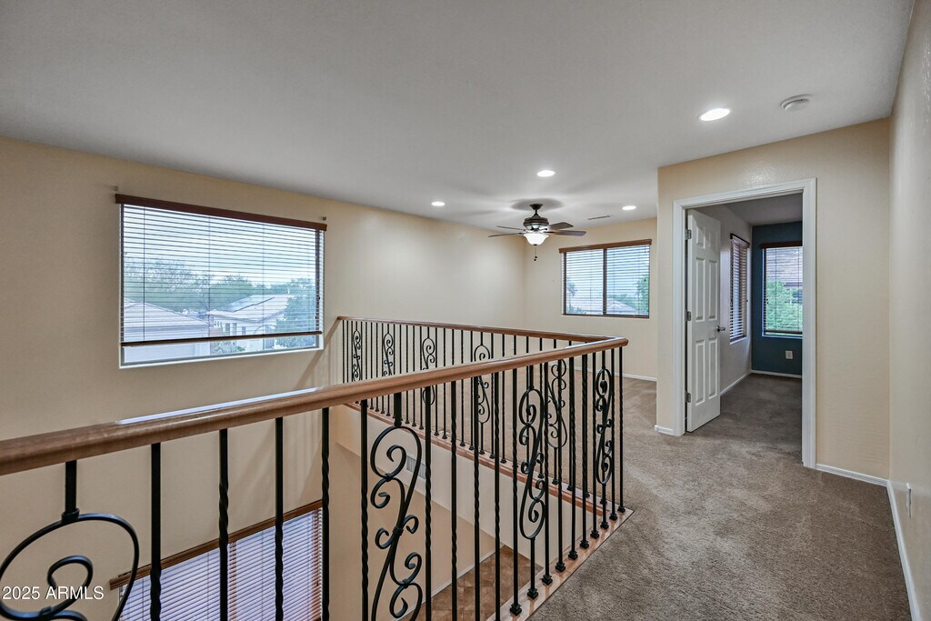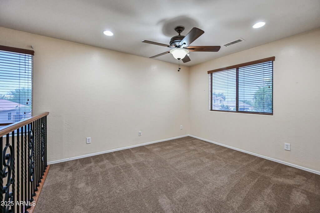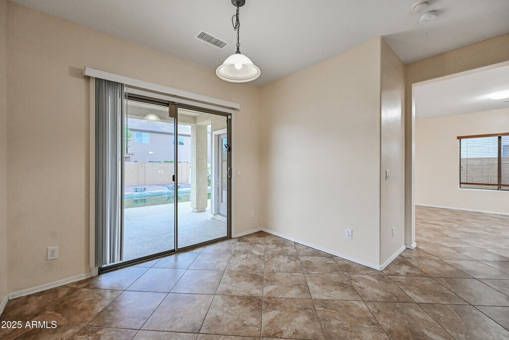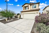 Welcome to this stunning 2-story rental home on a premium corner lot! Enjoy great curb appeal with colorful desert landscaping,a gated entry,and a spacious 2-car garage. Step inside to an open,light-filled floor plan featuring tall ceilings,modern tile flooring,and plenty of natural light throughout. The kitchen offers stainless steel appliances,ample counter space,an island,and a cozy breakfast nook. Upstairs,a large loft provides the perfect space for an office or play area. The primary suite includes dual sinks and a walk-in closet. Outside,unwind in the beautiful backyard complete with covered and paver patios,artificial turf,a fire pit,and a sparkling poolperfect for relaxing or entertaining.