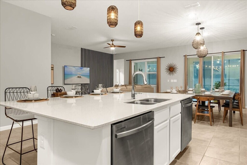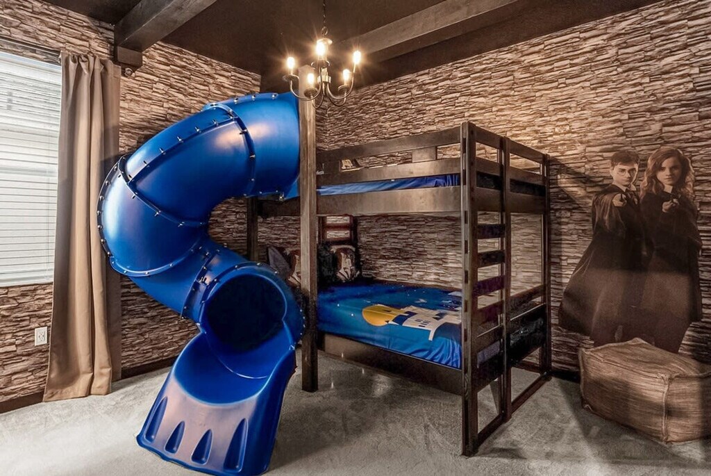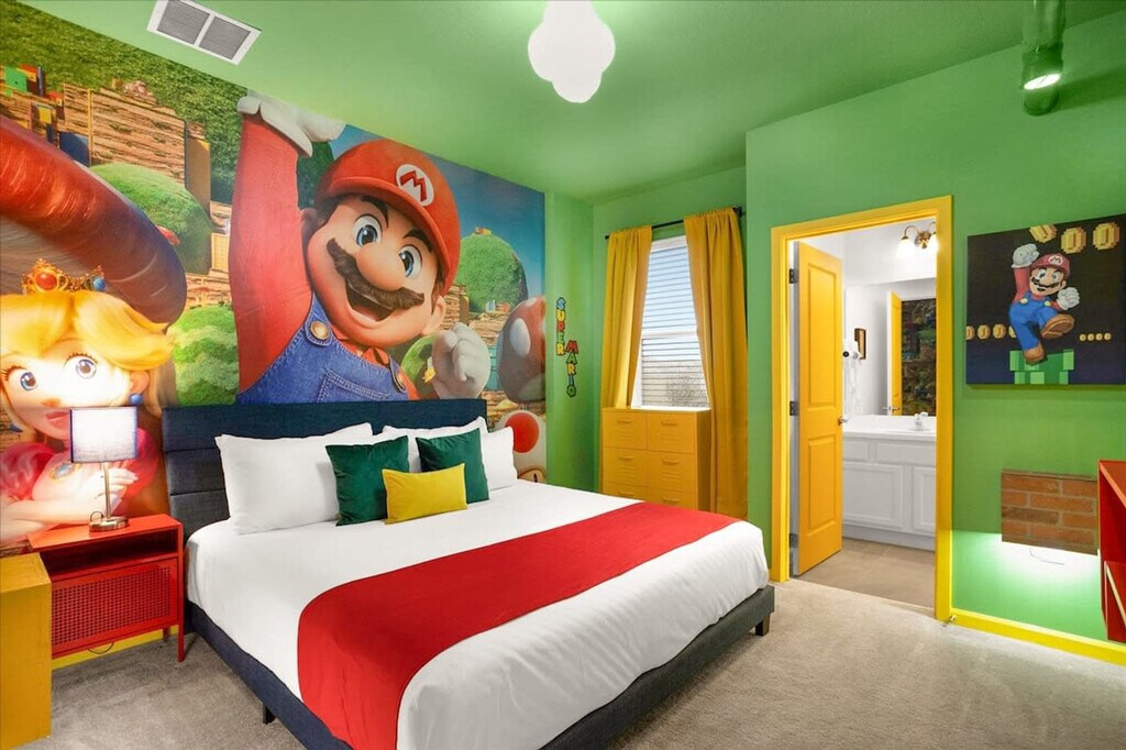 Adventure meets luxury in this 12-bedroom, 11.5-bathroom Bella Vida Resort villa for 26 guests. Feel at home in custom-themed rooms inspired by Harry Potter, Mario, Star Wars and more. This home is packed with entertainment, from an Avatar-themed arcade to a private theater. The spacious living area features a 65" Smart TV and comfy seating. The fully equipped chef’s kitchen includes high-end appliances, 2 fridges, 2 dishwashers and all cookware. There is indoor dining for 12, plus island seating for 4. Enjoy the private swimming pool and spillover hot tub with safety fence, a covered patio with lounge and dining seating, and a BBQ grill. Pool heating and hot tub heating are available for $35/night each, or a pool and hot tub combo is available for $60/night with a 2-night minimum. A one-time propane refill for the BBQ is available for $55. A Pack 'N Play crib and highchair are available for rent for $40 each. A pet fee of $129/pet per stay will be added at the time of booking if the pet is added to the reservation. If no pet is declared during booking, the fee will be collected separately. An extra fee of $129 per pet will be collected after booking confirmation if you have more than one pet. A maximum of 2 pets per stay is allowed, with no Pit Bull breeds. Located in a gated community just minutes from Disney, this home is 5 minutes from Walmart and local dining, 10 minutes from Old Town and Fun Spot, 15 minutes from Disney World, and 25 minutes from Universal Studios and Orlando International Airport. Parties, events and smoking/vaping of any kind are prohibited in or around the property and risk a fine of $150 and/or forfeiture of the full deposit. Late departures will result in a fine of $150 for each additional hour the property cannot be accessed for turnover. Please clean up after yourselves and any pets, as large messes will result in an additional cleaning fee. Firearms and weapons are strictly prohibited in this home. This is a family-friendly property in a quiet neighborhood, so please respect quiet hours and resort rules during your stay. To help ensure a safe and trusted experience for all guests, ID verification may be required after booking. [SI]
