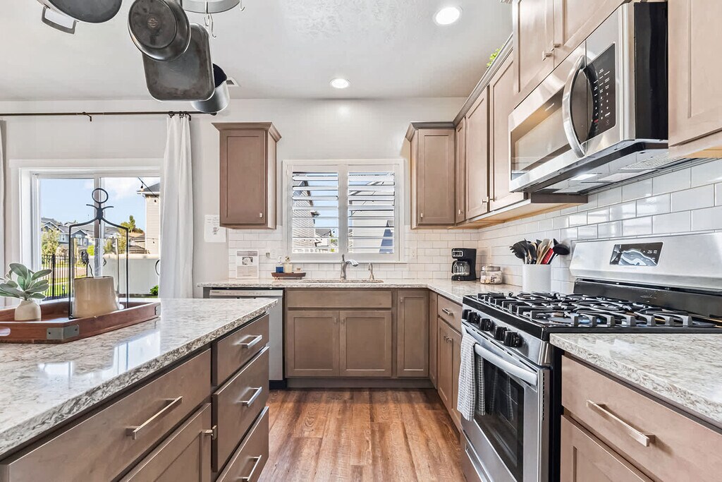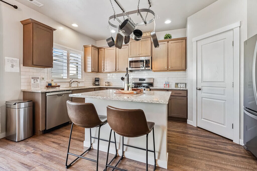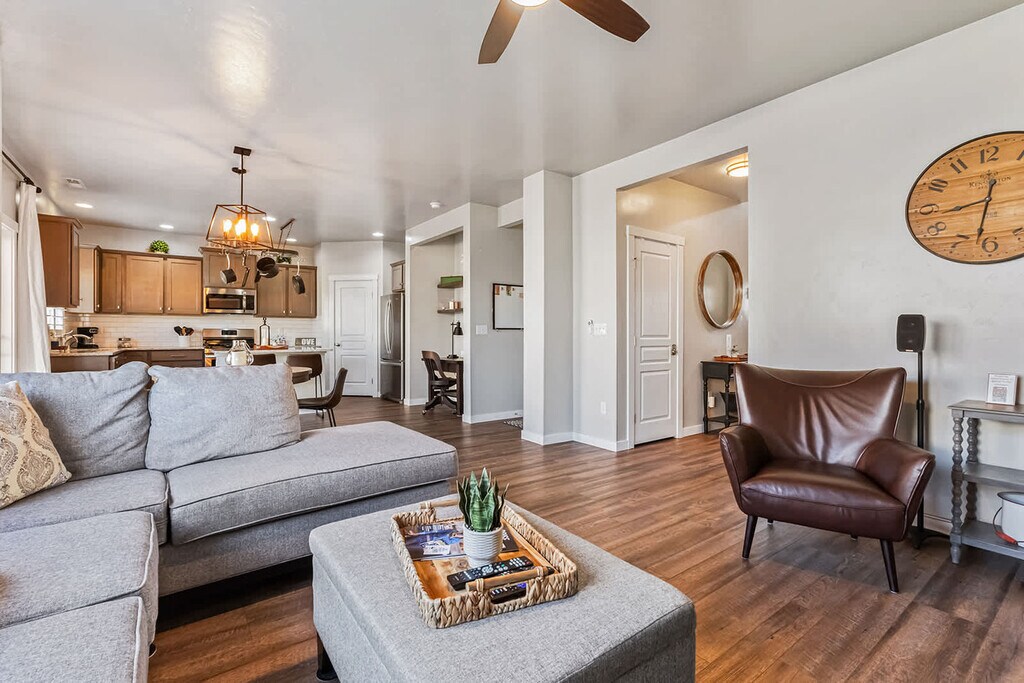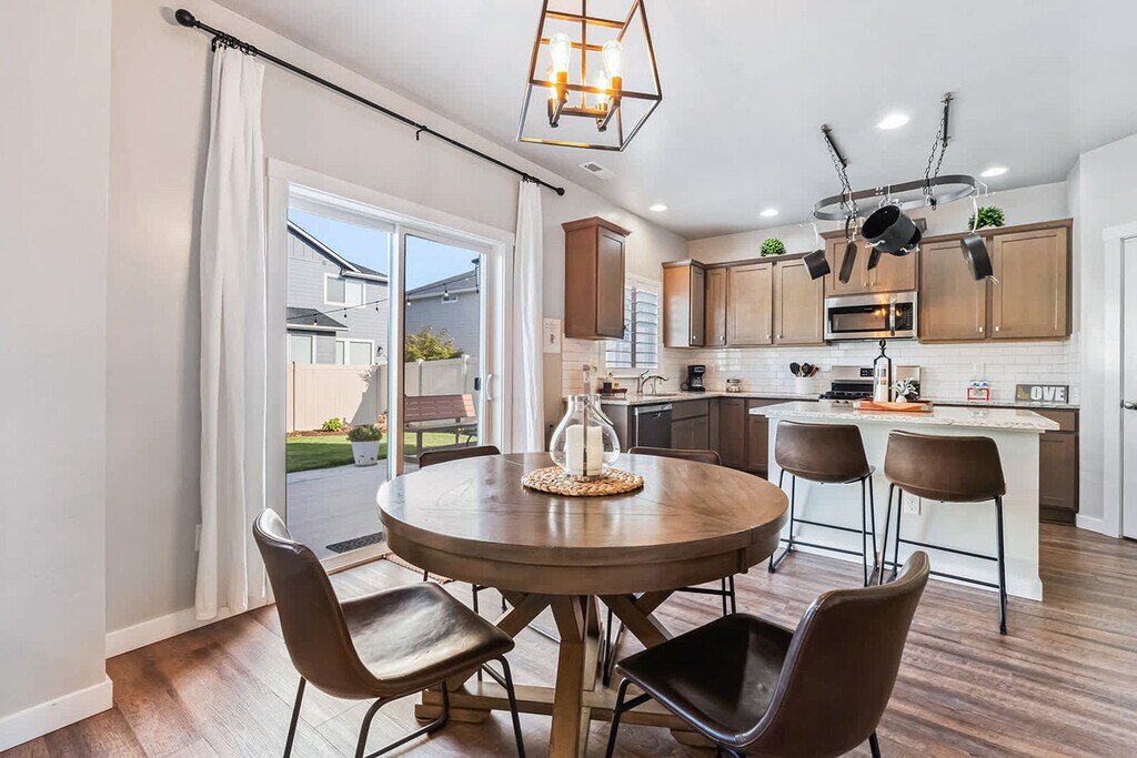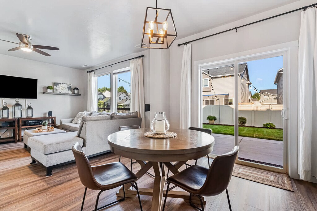 Welcome to this charming Eagle, Idaho apartment! Nestled in a picturesque new neighborhood, this cozy haven promises a serene escape. With modern amenities, inviting interiors, and nearby attractions, it's the perfect retreat. Relax in the spacious living area, enjoy peaceful nights in well-appointed bedrooms, and explore the beauty of the surrounding area. Your ideal getaway awaits in this delightful home! This apartment boasts three cozy bedrooms, each thoughtfully designed to ensure a restful night's sleep. The master suite is a true sanctuary, complete with a plush king-size bed, a spacious walk-in closet, and a luxurious en-suite bathroom. The other bedrooms offer a comfortable queen bed and a queen over queen bunk bed with convenient access to pristine bathrooms, ensuring everyone has their own space to unwind. The twin rooms are equipped with floor mats as well as a den space with a fold-out couch. Guests are required to digitally agree and sign house rules and rental agreement which will be emailed once booking is received. [SI]