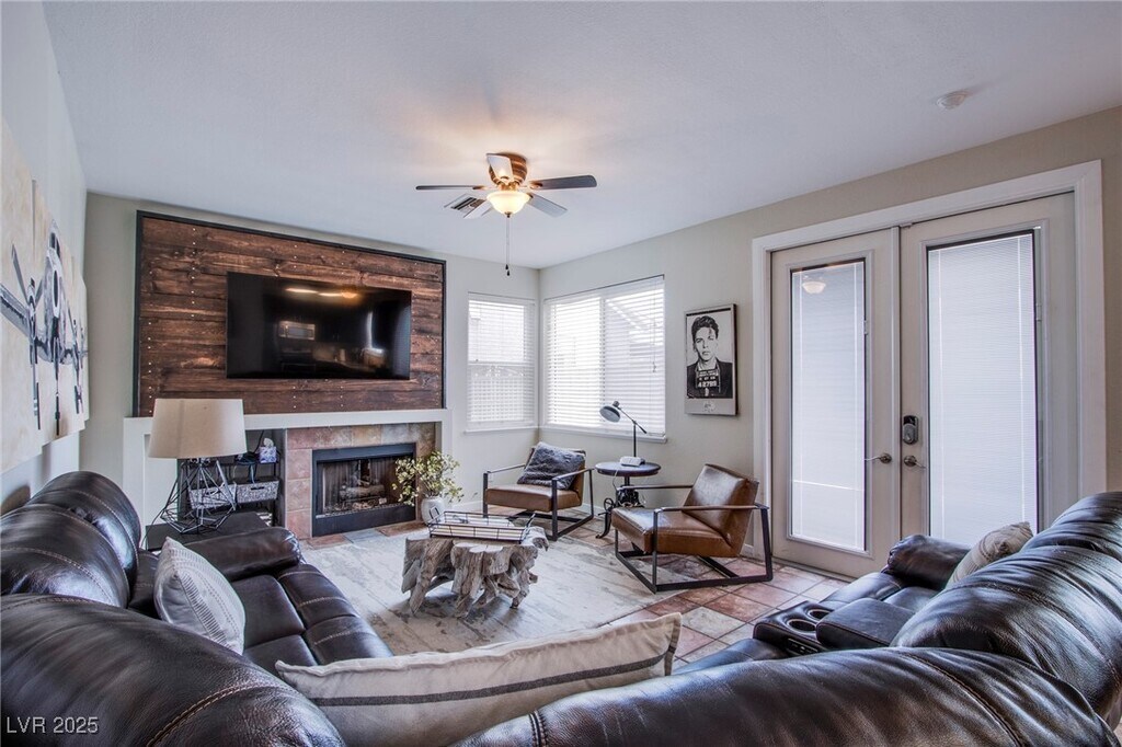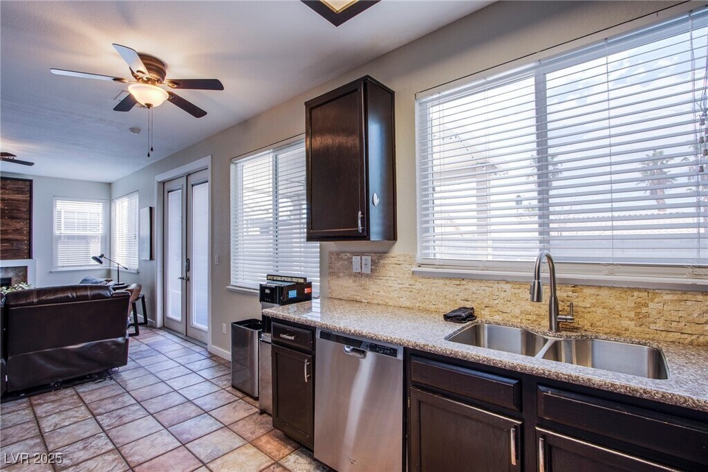 Fully furnished 3 bed 2.5 bath home with den and pool located in Henderson! Vaulted ceilings and natural lighting throughout! Kitchen features stainless steel appliances and plenty of cupboard space! Primary bedroom with ceiling fan and walk in closet and bathroom with double sink vanity and beautiful custom large walk in shower with bench! Oasis backyard includes covered patio with BBQ! Heated pool features a waterfall and tanning ledge! Monthly pool service included! Brand new air conditioning unit! 2 car garage with access to home and 3 car driveway! Great savings with solar energy panels and electric vehicle charger! **Note** Rental price includes $25 for trash fee!