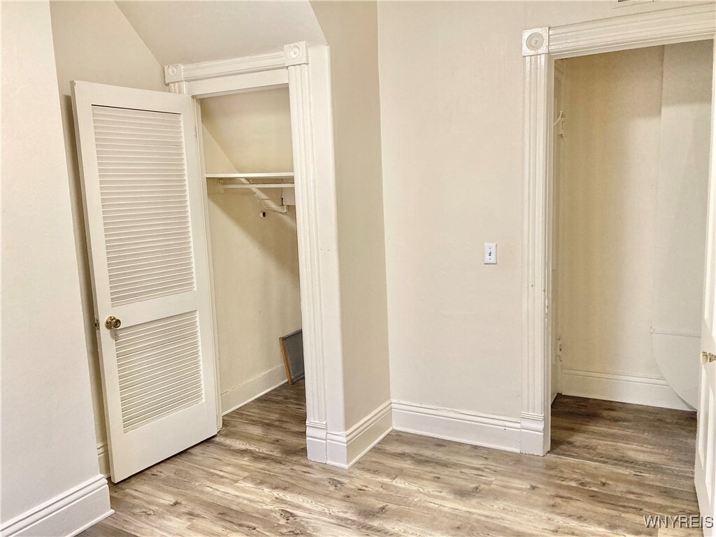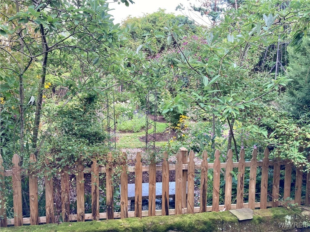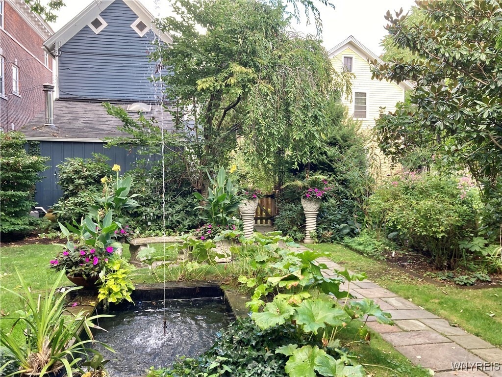 This charming 2 BR,2 story apartment is designed as a Townhouse. Enter through the front gate and a brick walkway guides you to the side entrance with a cozy deck nestled among the trees. Step inside to find a large,recently updated Kitchen. To the left is a spacious Living Room w/frpl,skylight and glass doors to the deck. To the right of the Kitchen is the Dining Room. Stackable W/D are tucked into the closet off this space. Upstairs brings 2 Bedrooms with an updated Bathroom. Attic storage is available as well. Tenants also share the enormous,magnificent garden! Conveniently located between Allentown and the Elmwood Village. Downtown and the Medical Campus are also a short distance away. No smoking. One small dog or cat ok.