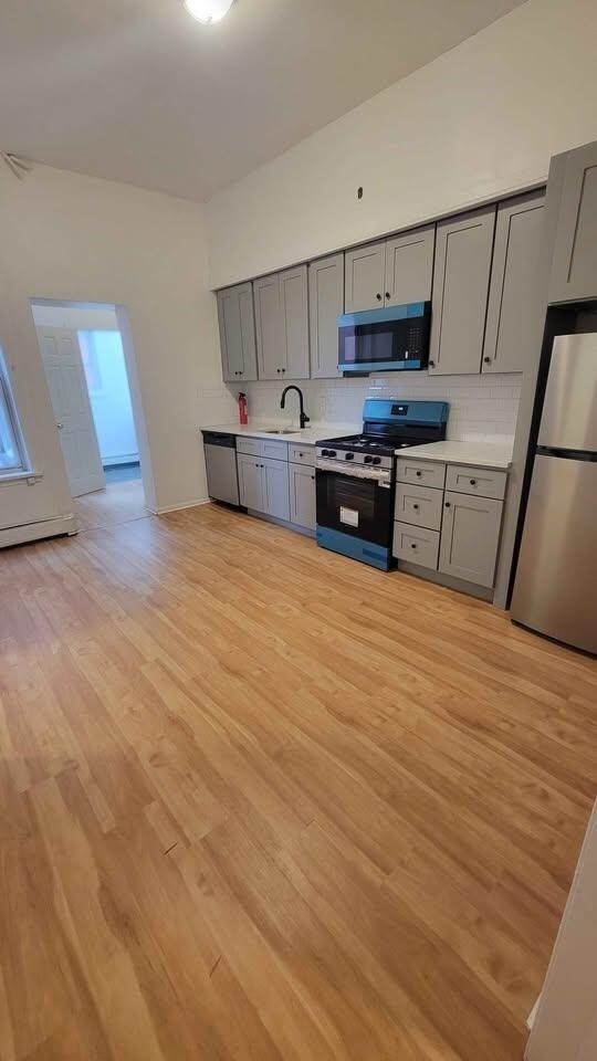 Welcome HOME TO THIS LARGE 3 bathroom 1 BATH apartment near journal square path. The Journal square area is a business district, residential area, transportation hub, and the hottest trending area of jersey city! Featuring 9 FOOT HIGH CEILINGS, brand new flooring, fresh paint, dinning room, Large eat IN kitchen with upgraded modern light fixtures. Large closets in bedroom. Just a short walk to Journal square path train In unit washer and dryer.