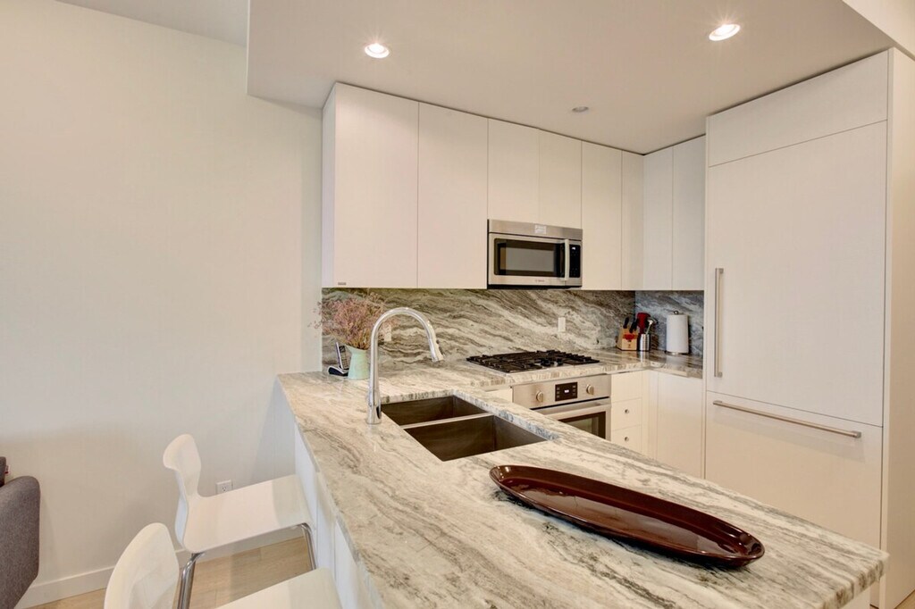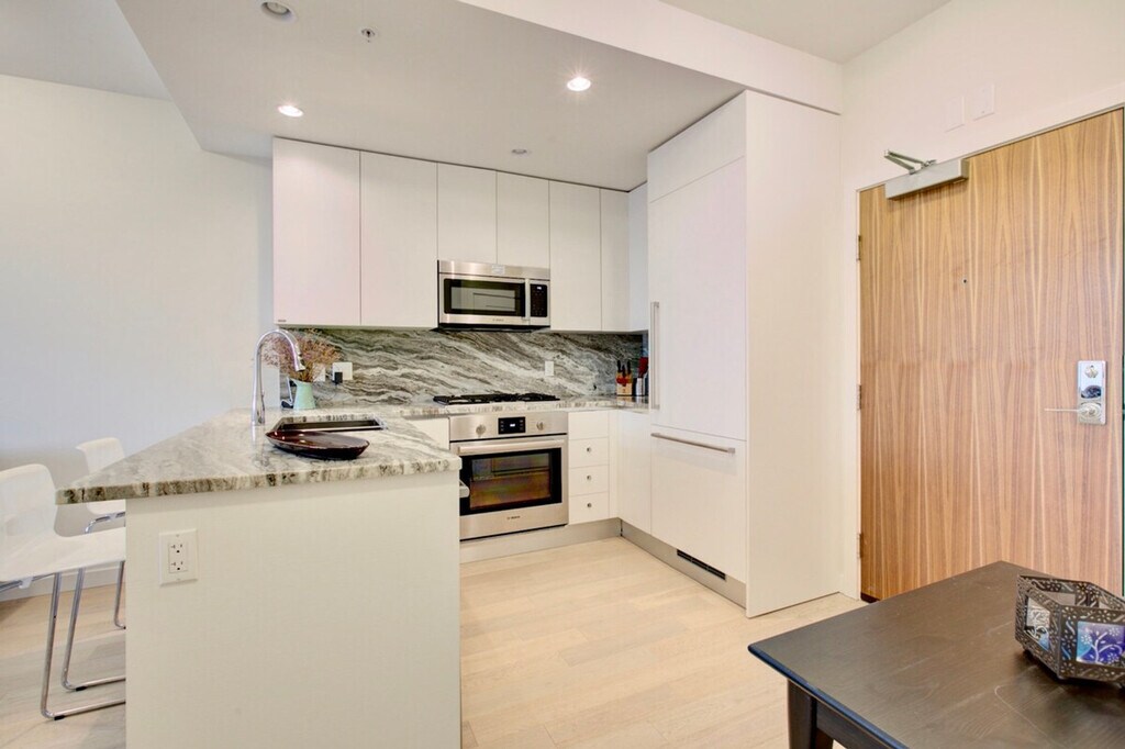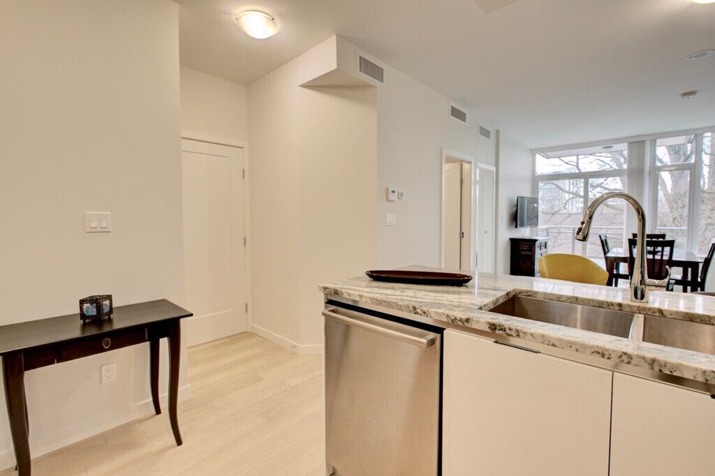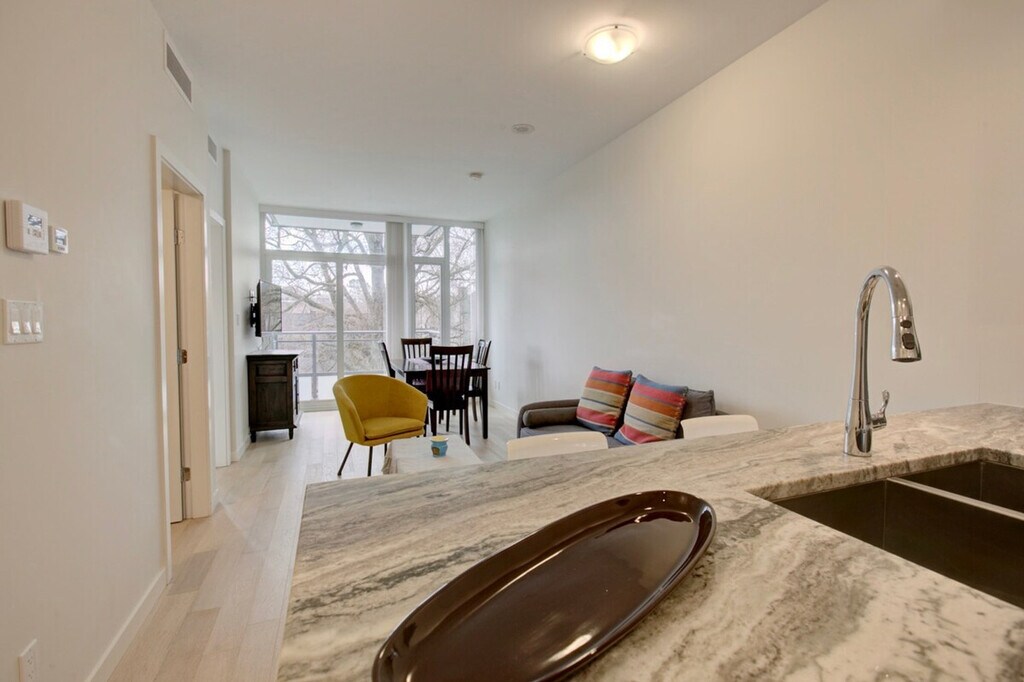 Feel at home in this fully furnished condo featuring stylish finishings and an open layout. As you walk into this unique and family-friendly place, you are welcomed by the high ceilings and beautifully designed engineered hardwood flooring. [SI]