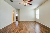 Open floor plan in a great neighborhood. Split bedrooms, formal living and dining, spacious kitchen with walk-in pantry, and family room with fireplace. Home has laminate wood-look flooring throughout, including bedrooms. The spacious master suite is at the back of the house, with views of the private backyard. Master bath with dual sinks, garden tub, and separate shower. Close to Mckinney North High, and easy access to Hwy 380 and Hwy 75. 2.4 miles to Costco.
