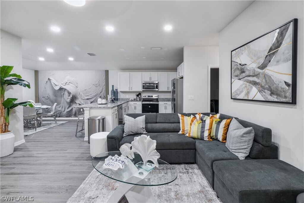 Exquisite,fully furnished 3-bedroom,2-bath residence in Cape Coral,impeccably maintained and elegantly appointed. This stunning home features a bright open-concept layout,refined finishes,and upscale furnishings for a true turnkey experience. Ideally located just minutes from Cape Coral beaches,vibrant dining,and top local attractions. Available March 1st—perfect for enjoying sophisticated Florida living at its finest.