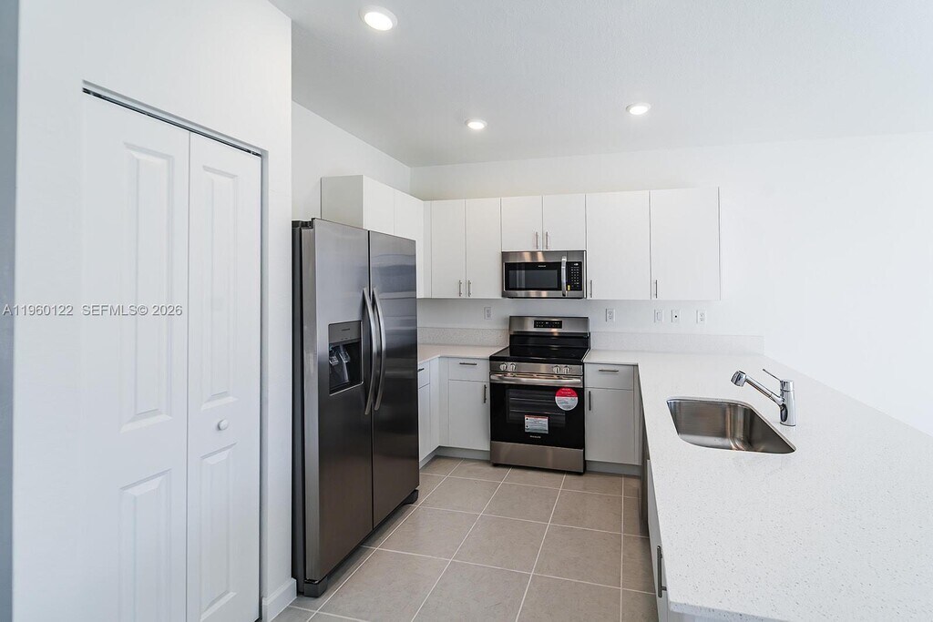 New construction (2024) two-story townhouse offering 3 bedrooms, 2 full bathrooms, and 1 half bath. The layout includes a combined family and dining area with a modern kitchen, plus a separate living room ideal for relaxation or entertaining. All bedrooms are located on the second floor. The kitchen features stainless steel appliances, quartz countertops. Ceramic tile flooring throughout the main level and carpeted bedrooms upstairs provide both style and comfort. Enjoy outdoor living, fenced patio, perfect for entertaining or unwinding. Conveniently located near schools, Turnpike Exit 2, retail shops, restaurants, a hospital, Amazon Distribution Center, and Homestead Air Reserve Base. MLS # A11960122