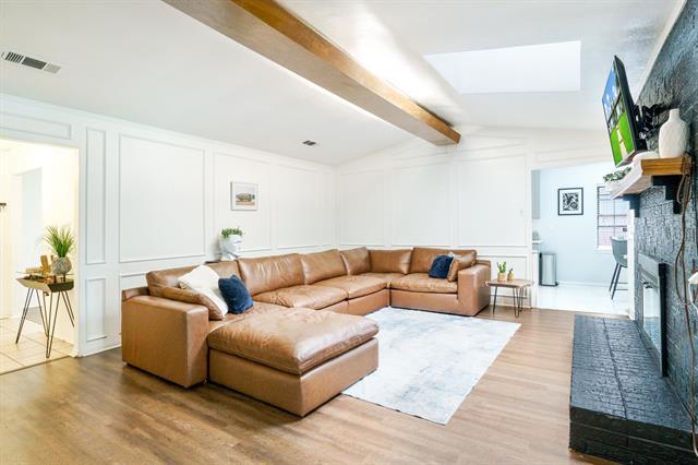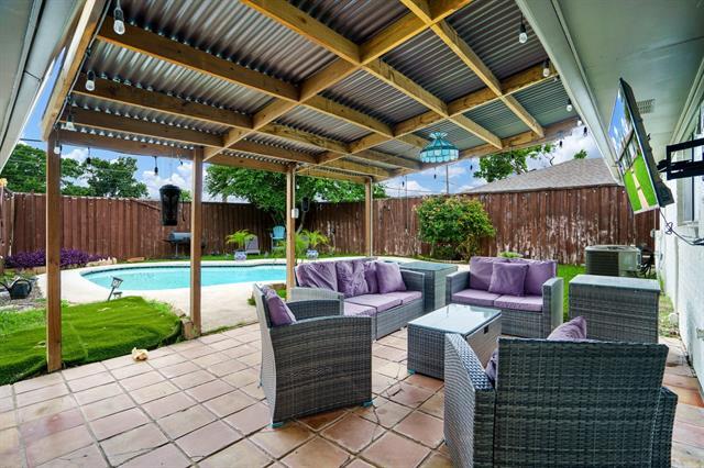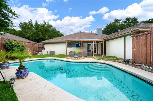 Beautiful 3-bedroom, 2-bath home in central Plano. Features include updated kitchen with modern finishes, spacious living area with fireplace, and bonus flex room ideal for office or game room. Recent updates: electrical, flooring, and exterior paint. Enjoy a private backyard with a pool, pergola, and pool equipment. Includes a two-car garage. Convenient location in an established quiet neighborhood.