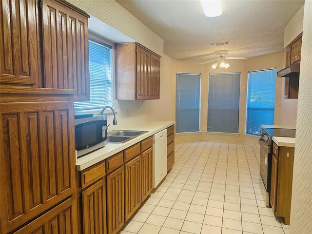 Ready for immediate move-in on rental application approval by owner. Nice 3-2-2 one-story brick, quiet neighborhood & street. The living room has a corner fireplace, a cathedral ceiling, earth tone carpet, beige tile in the kitchen, and bold neutral colored tile in the baths. Neutral paint throughout out home. Kitchen and breakfast area with front bayed window overlooking front yard, beautiful cabinetry throughout, and some updates. New roof 2024. Three bedrooms - master is a nice size with 2 closets and an ensuite bath. Two full bathrooms updated. Separate utility room with extra cabinets for storage. Good-sized yard, wood fence. Quiet area, easy commute via 161 or I-20 & 30 to Dallas or FW, and close to 161 shopping, sports, entertainment, and restaurants. Grand Prairie ISD is a school of choice ISD, Fine Arts, Career HS, and so much more.