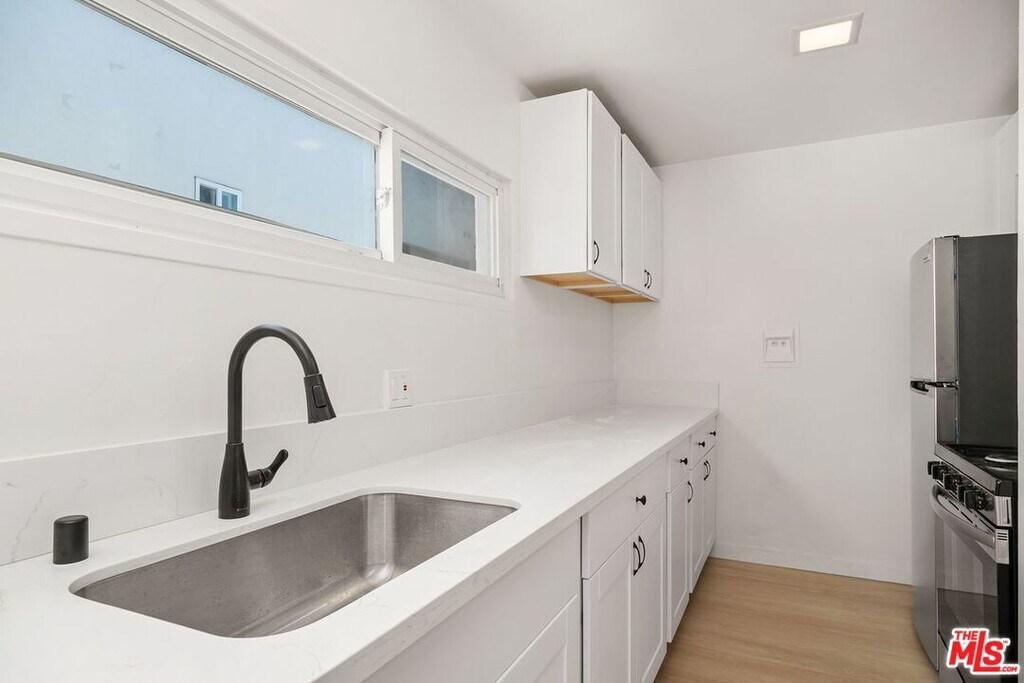 Discover this beautifully updated 1-bedroom, 1-bath Santa Monica condo, perfectly designed for modern living. Sunlight fills the open-concept living, dining, and kitchen area, featuring Positano oak vinyl floors, sleek shaker-style cabinetry, and Calacatta Cloud countertops. The kitchen includes brand-new stainless steel appliances and an oversized sink ideal for cooking and entertaining. The fully renovated bathroom offers clean, contemporary finishes for a spa-like feel. This rare floorplan offers enhanced privacy with virtually no shared walls. The bright bedroom includes multiple closets and French doors opening to a Juliet balcony. Additional storage is available in a hall closet and a large living-area closet. A private patio provides space for a cafe table, plants, or light outdoor exercise. Located on a quiet, tree-lined stretch of Centinela Avenue, the gated community features covered parking with storage, a pool, and community laundry. Just minutes from Santa Monica's beaches, shops, and restaurants, this move-in-ready condo combines style, comfort, and convenience. MLS# 25614465
