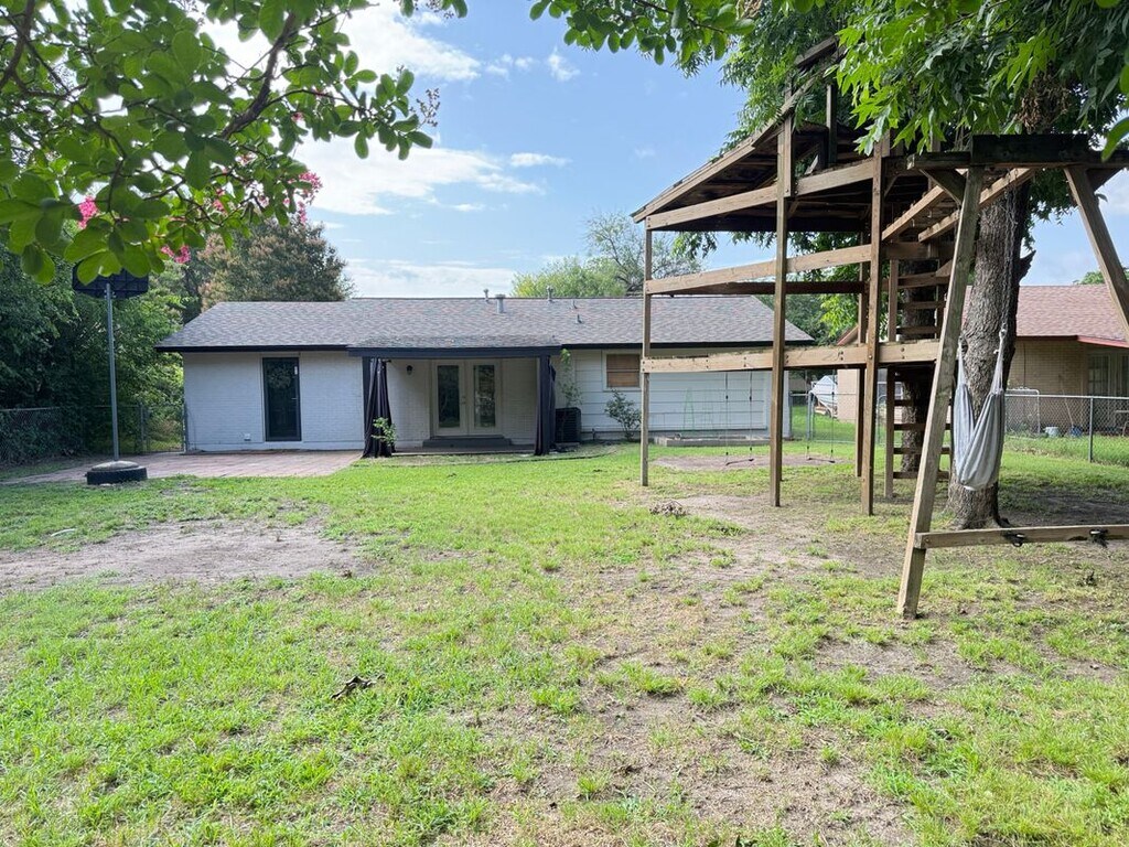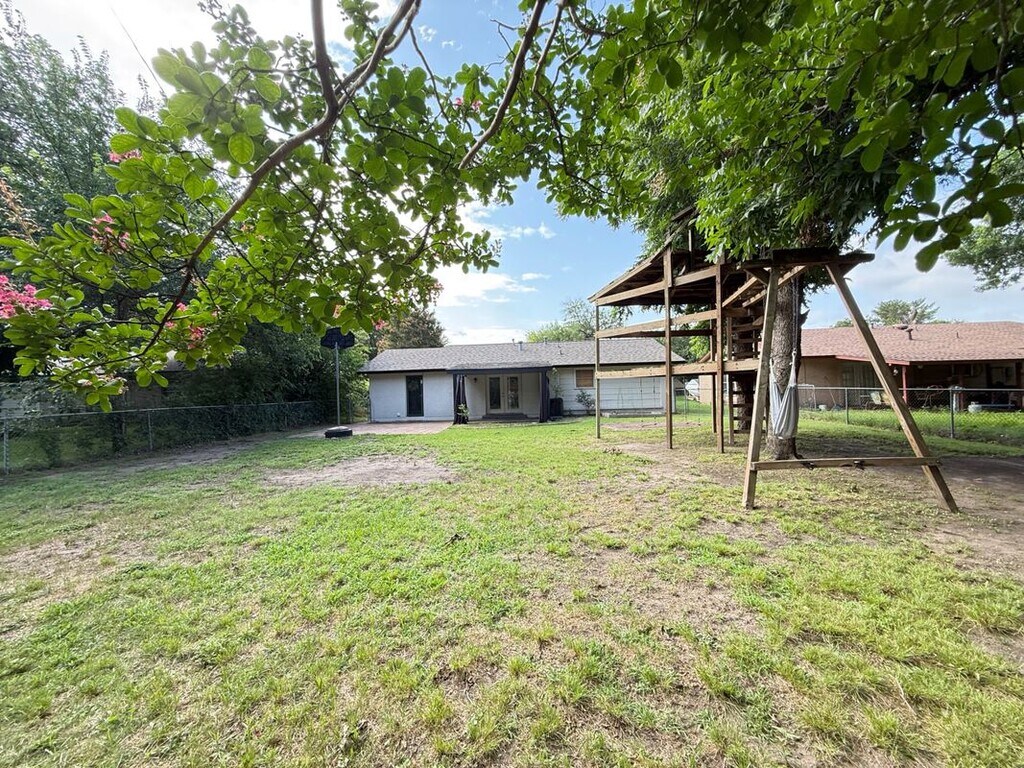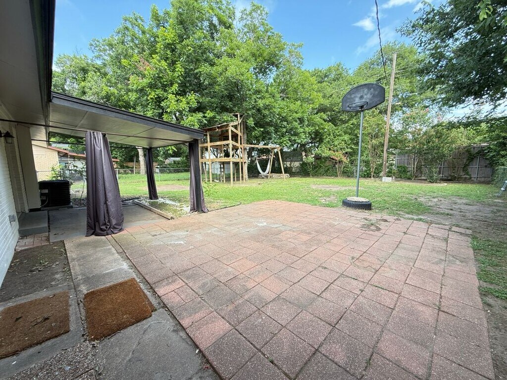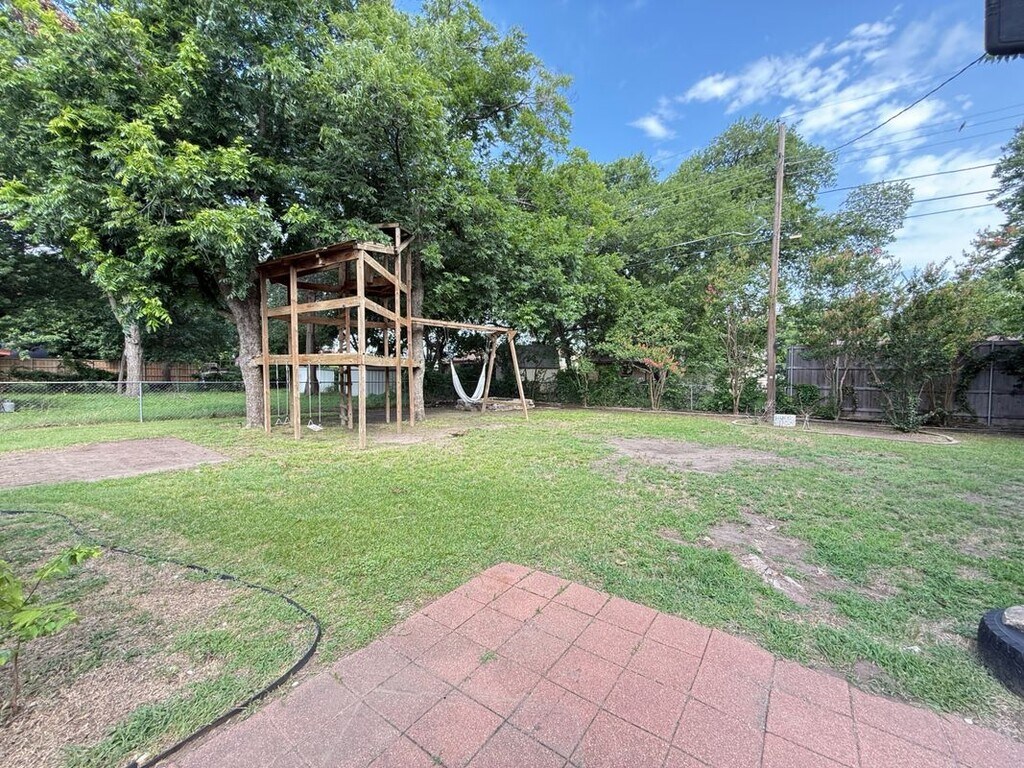 Welcome to your new home in the heart of Irving, TX! This charming single-family residence offers a cozy atmosphere with 3 bedrooms and 1.5 bathrooms, making it perfect for families or anyone seeking spacious living. The inviting front porch leads you into an open living area, complete with natural light, tile flooring, and ceiling fans for comfort. Enjoy the ample closet space in each bedroom and the convenience of laundry hookups. Step outside to a large backyard featuring a patio area for gatherings and a play structure for children. The fenced yard ensures privacy and security, while a dedicated parking spot and a one-car garage add convenience. With nearby parks and amenities, including Medical City Las Colinas just a short drive away, this home is ideally positioned for both relaxation and accessibility. Don't miss out on this opportunity! Schedule a tour today and make this delightful property your own.