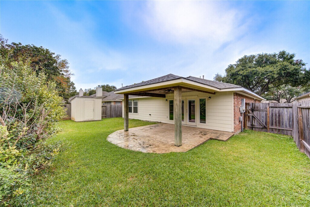 Beautiful one story home,well maintained and move in ready. Home features include a formal dining room,spacious living room with open concept. Access to backyard with covered porch (french doors). Outdoor patio with stamped concrete and reclaimed wood ceiling. Kitchen with granite counters/stainless appliances/lots of cabinets/breakfast bar,master bedroom with expanded closet and built-in. Semi-butted glass shower updated to provide more shower space. 36” vanity countertops in both bathrooms. Storage shed in backyard,lush landscaping and a two car garage with opener with exterior keypad. Storage shelves in garage. Stamp concrete on both sides of driveway. This home has beautiful tile flooring/carpet in bedrooms only. Pecan Lakes has a rec center with a pool and playground. Easy access to the grand parkway,hwy 90,shopping and restaurants nearby. Washer/Dryer/Refrigerator included. Don’t miss out-schedule your showing today! MLS# 68069026