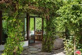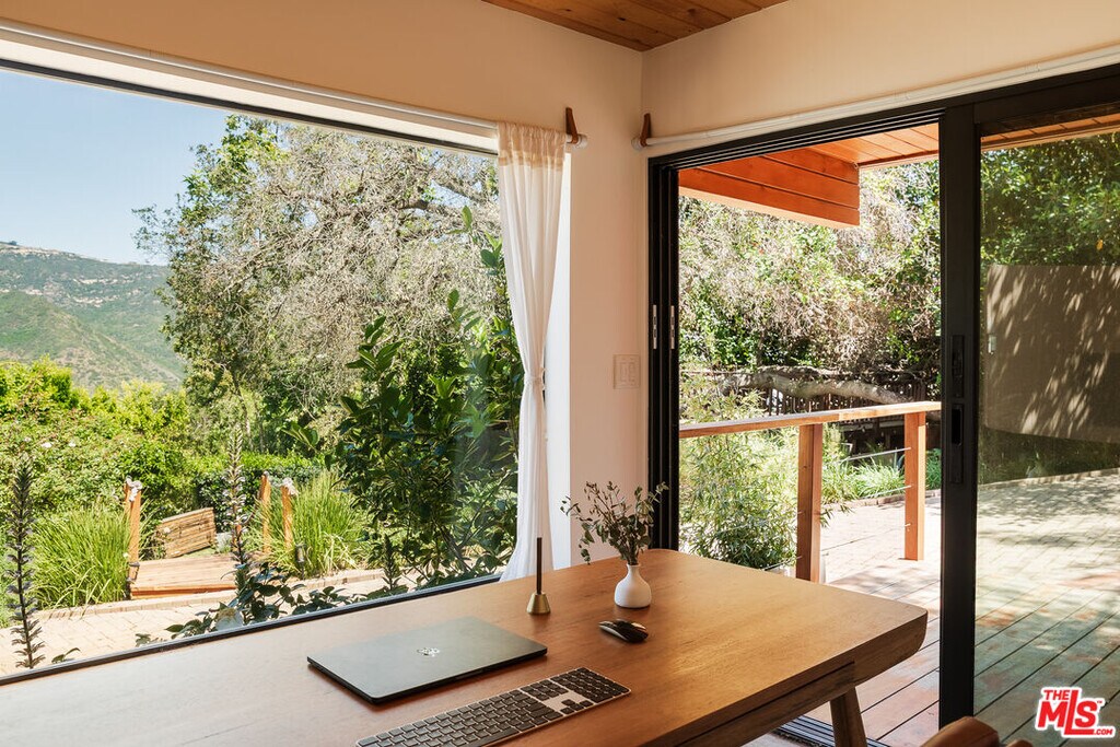 Perched above a serene Malibu canyon, this sanctuary is a study in material, light, and intentional livingwhere architecture and nature exist in quiet harmony. Surrounded by mature trees and sweeping mountain views, the home invites a grounded, mindful rhythm, offering a rare balance of sustainable design and modern comfort.At its center, the kitchen functions as both sculpture and workspace. Handcrafted solid wood English cabinetry by deVOL is paired with rich copper countertops, a 48" AGA induction range, an aged copper sink, and a solid brass faucet. Commercial grade appliances include a True 36" refrigerator and 24" freezer columns, alongside a walk-in pantry framed by old-world hand-blown glass crittall-style doors. Designed for both everyday living and elevated entertaining, it's a space where form and function meet with effortless precision.The interiors reflect a commitment to wellness and craftsmanship. Hardwood hickory floors run throughout, complemented by mineral-based paints and non-toxic, plastic-free finishes that support a clean, restorative environment. Expansive floor-to-ceiling glass doors fill the home with natural light and create seamless indoor-outdoor flow, enhanced by integrated Bowers & Wilkins speakers for a subtle, immersive experience.Outside, a newly rebuilt floating deck opens to thoughtfully designed outdoor spaces garden paths, mature fruit trees, native plantings, and areas for both quiet reflection and large gatherings. A detached guest house with kitchenette and steam shower offers flexibility for visitors or extended stays. Additional amenities include a creative studio, outdoor shower, and fire-pit lounge, elevating the lifestyle experience.Sustainability is woven throughout, with energy-efficient systems, a backup generator, whole-house water filtration with UV, and rainwater and greywater systems supporting conscious living without compromise.Private, gated, and minutes from Malibu's most coveted destinations including Nobu Malibu, Point Dume, and world-class beaches this residence offers a rare clarity of vision: a home defined by intention, wellness, and deep connection to its surroundings. MLS ID 26787805