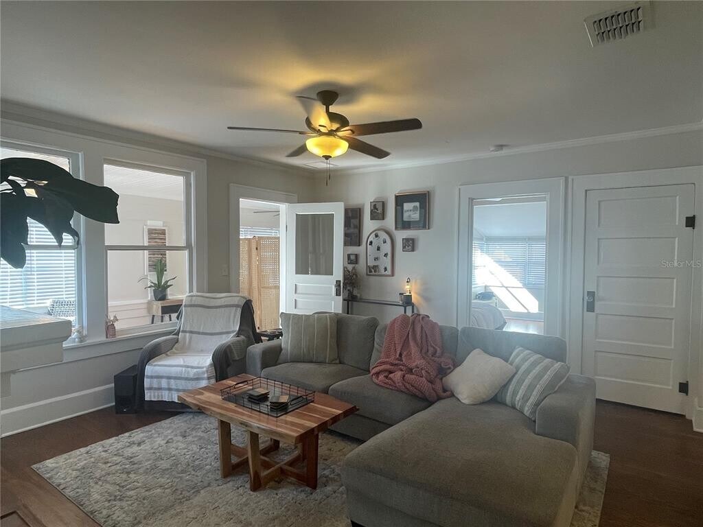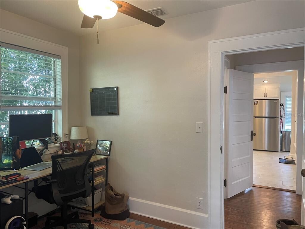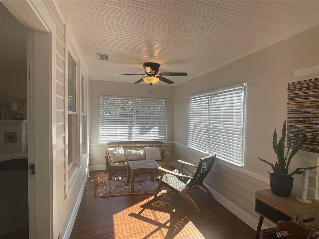 Greater Woodlawn Annual Rental Avail April 2026. Jaw dropping renovated 1214SF spacious vintage apt with 2nd floor 2 bed,den,1 bath,has so much character and charm and unique spaces offering an open floor plan filled with natural light. Incredible Custom KITCHEN includes shaker style cabinets with upper and lower lighting,QUARTZ counter-tops,back splash,cabinet pantry,newer stainless Steel appliances,and water filtration at kitchen sink and a 15x15 living room with decorative brick fireplace adjacent to a 25x8 air-conditioned Sunroom that also is home to the indoor laundry room exclusive to this Apt. The bedrooms have walk-in closets and ceiling fans. Renovated Bathroom has art deco style flooring new cabinet,fixtures,stone countertop and tub shower with rain head. Refinished wood floors,new kitchen and bath,appliances,front load washer dryer,fixtures,lighting,blinds,remote control ceiling fans and more. There are Two Energy efficient brand newer Mini-splits will save on electric bill and provide central heat and air. Landlord includes W/S/T,exterior pest control,grounds maintenance and 24hr management. Tenant pays electric and internet. Greater Woodlawn St. Petersburg neighborhood is the ideal spot for those who wish to reside in a secure and vibrant area. Due to its proximity to the city’s downtown area of St. Petersburg,residents are able to take advantage of many facilities and activities including parks. Favorites include Crescent Lake,Body Electric Yoga,shopping and entertainment,restaurants,Trips Diner,coffee houses,consignment shops,events,museums and more. MLS# TB8473474
