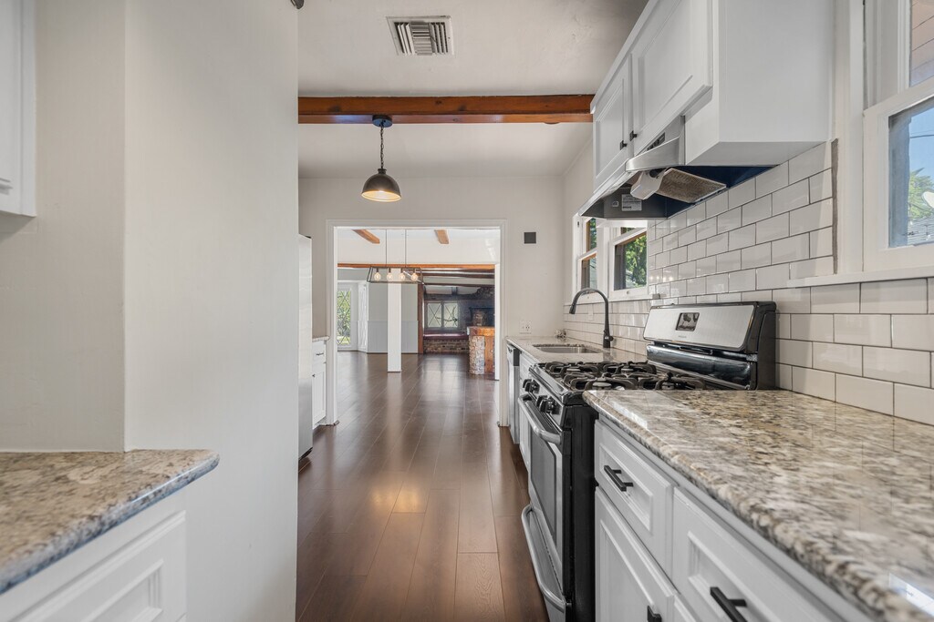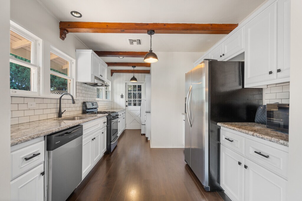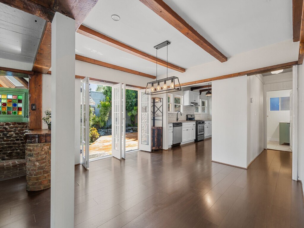 This darling historical, renovated cottage is one of a kind! Bright and airy home in the heart of the coveted Rose Park neighborhood. Approaching the house you are welcomed by the quaint brick entryway and the oversized Dutch door. The open floor plan, remodeled kitchen, hardwood floors, exposed beams and plenty of natural light combine to create a charming, welcoming space. A large rear, private deck is exceptionally well placed off the main living area through the double French doors; a perfect space for entertaining friends and family that offers an amazing integration of indoor/outdoor living. The private back yard is nicely manicured and perfect for bbq’s with friends and family. Central A/C throughout. Full bathroom is nicely updated, as well. The primary bedroom's walk-in closet is great space. Located in the lovely Rose Park Historical District of Long Beach you are close to restaurants, shops and not far from freeways if you are commuting. EZ street parking! Hurry, this won’t last!