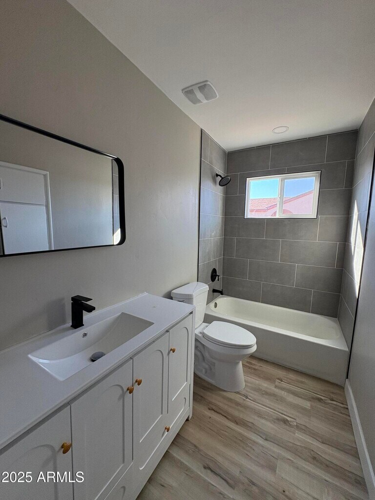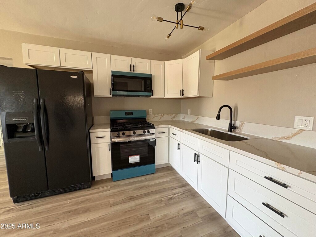 Remodeled single-level 3 bedroom,2 bath home featuring fresh neutral two-tone paint,new vinyl flooring,and a fully updated kitchen with new cabinets,quartz countertops,and stainless steel stove and microwave. Bathrooms include a new subway tile shower,updated vanity,and modern lighting throughout. Street parking only.