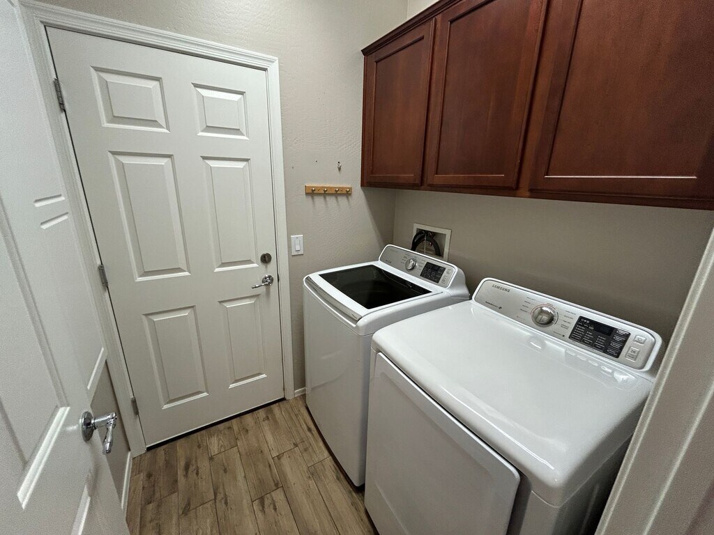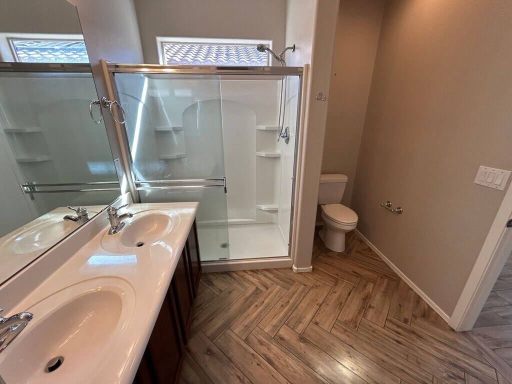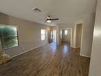 Welcome to this stunning two-bedroom plus den, two-bathroom home, designed for both comfort and style. This residence offers an elegant living space with wood-look ceramic tile flooring throughout and ceiling fans in every room for year-round comfort. The kitchen is a chef’s dream, featuring upgraded cabinets, sleek granite slab countertops, and high-end stainless steel appliances. The spacious primary suite includes a walk-in closet and a beautifully designed walk-in shower. Custom paint adds a touch of personality to every room, while 2" wood blinds on all windows provide privacy and warmth. Thoughtful storage solutions are found throughout, with built-in cabinets in both the laundry room and garage. Step outside to a covered patio overlooking a luxurious heated pool, perfect for relaxation or entertaining. This home offers a perfect balance of style, functionality, and modern upgrades, making it a truly exceptional find. Don't miss the opportunity to make it yours! 12 month minimum lease. Pets ok with approval and an additional deposit, no cats. The security deposit is equal to one months rent. The application fee is $55 per adult. To apply online go to By submitting your information on this page you consent to being contacted by the Property Manager and RentEngine via SMS, phone, or email.