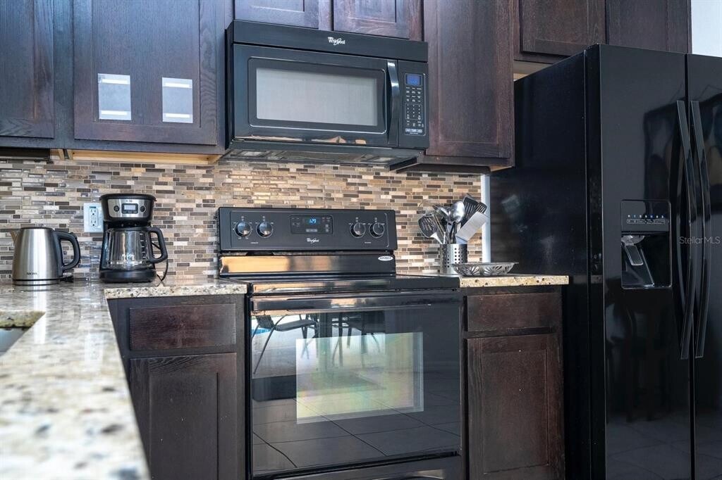 Immaculate fully furnished long-term rental home with private screened pool located in the desirable resort-style gated community of Veranda Palms in Kissimmee. This spacious 5-bedroom,4.5-bath home features over $50,000 in recent upgrades and includes TWO master suites,one on each floor,offering privacy and comfort for large families. Elegant open floor plan with modern décor,high-end furnishings,and a fully equipped kitchen with stainless steel appliances,breakfast bar,and dining area overlooking the pool. The upstairs loft is perfect for an office,game room,or additional lounge space. Enjoy Florida living with your private screened pool and furnished patio – ideal for relaxing mornings or entertaining evenings. Veranda Palms offers resort-style amenities including a clubhouse,beach-entry pool with slide,fitness center,playground,and 24-hour gated security. Prime location minutes from Disney World,shopping,dining,and major highways. Offered fully furnished and equipped with electronics. Rent: $3,800/month. Security deposit subject to credit. Minimum 12-month lease required. Move-in ready and perfectly maintained – a rare opportunity for long-term living in a luxury resort community. MLS# O6357342