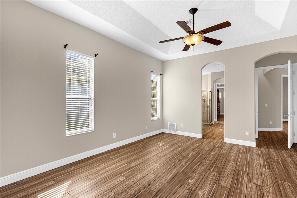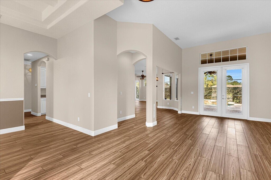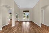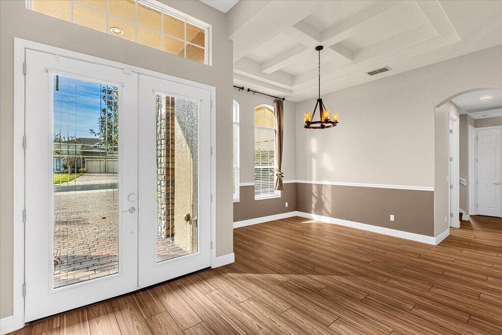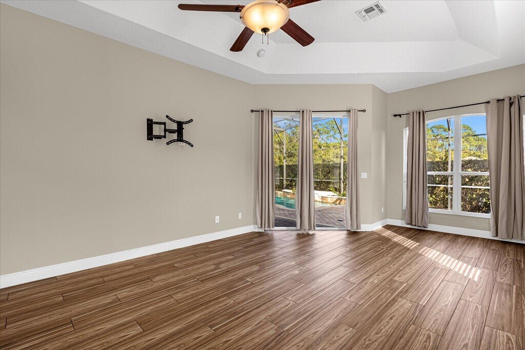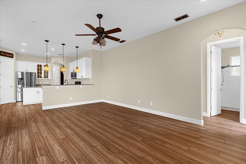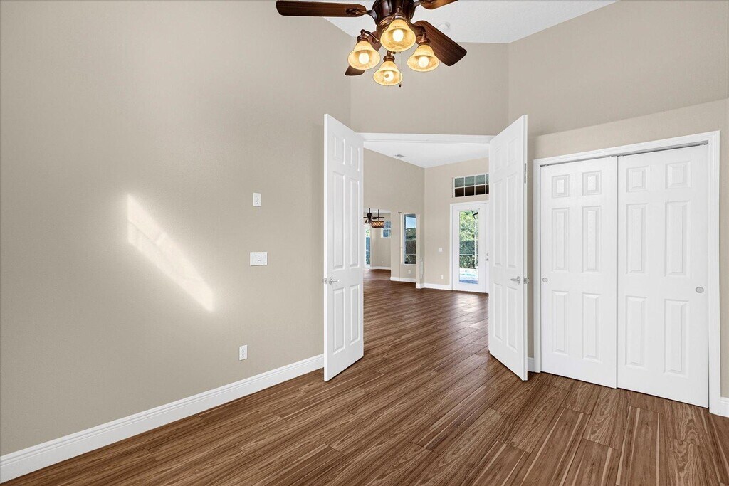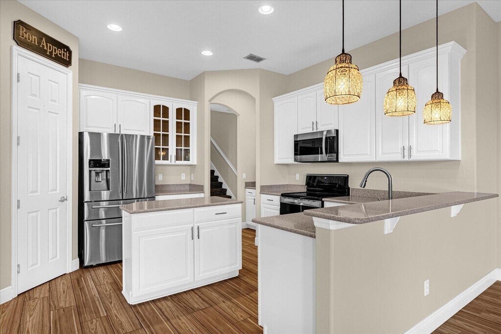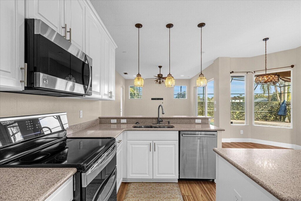 Discover this luxurious 5-bed, 3-bath waterfront oasis in Buckingham Estates, a guard-gated community. The home features a bright exterior, French door entry, and abundant natural light. Inside, high ceilings and wood-look tile flooring create a stylish atmosphere. The kitchen boasts granite counters, an island, and top-notch appliances. A coffered ceiling graces the dining room, while the split bedroom plan ensures privacy.The master suite, accessed through double doors, offers a spa-like bathroom and walk-in closet. Additional bedrooms have built-in closets. A loft provides extra living space, and a glass door leads to a screened saltwater pool. The community offers serene pond views, a playground, and easy access to I4 and SR 417. Downtown Orlando is 25 minutes away, and popular attractions are within an hour's drive. Enjoy a suburban family lifestyle with nearby golf, tennis, sports facilities, and lakes. Don't miss this exquisite waterfront property! Discover this luxurio...