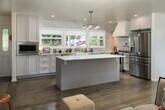 Light and bright living room /dining room opens to a tranquil backyard. Spacious, updated kitchen with large island completes this open floorplan. Up a few steps you will find 3 good size bedrooms and two full baths including a primary suite. Oversized garage with shelves for storage. Laundry area, which included a washer/dryer, in the garage. Garage also opens to backyard. Enjoy the backyard which offers many fruit trees, room for your own garden and lots of privacy. Gardener included. No pets. Unfurnished. One year lease. 6 month lease followed by month to month might be considered.