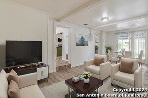 Just minutes from downtown San Antonio, this charming home seamlessly blends vintage character with modern elegance. Recently updated, a spacious, open-concept layout ideal for both relaxation and entertaining. The bright, airy living spaces has contemporary finishes, including a sleek kitchen with stainless steel appliances and granite countertops. Large windows flood the home with natural light, highlighting the beautifully updated floors. Enjoy a generously sized backyard.