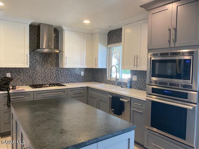 This lovely 3 bedrooms / 2 bathrooms single story is on a corner lot in a gated community. Refurbished with high end designer appliances by Thermador and fantastic lighting fixtures. The living room has large plantation shutters, built in book shelves, complete with a warm a cozy fireplace that looks out over the green belt. Two car garage with direct access. Please schedule your tour today.