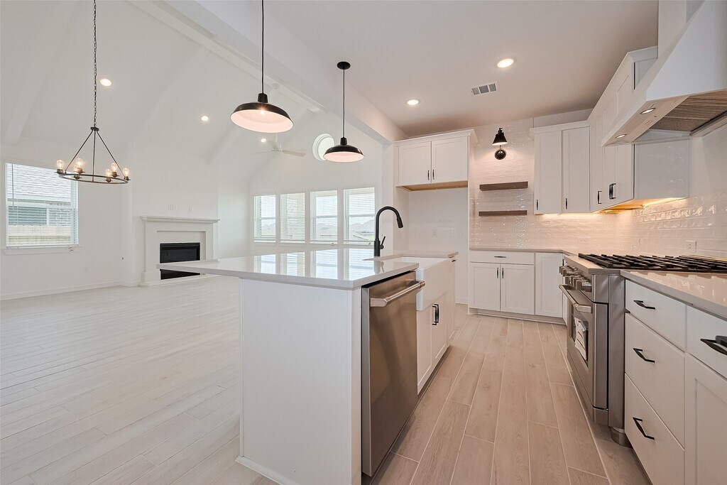 Discover Kingdom Heights,an amenity-rich community in Rosenberg,TX featuring K. Hovnanian's Looks - professionally curated interior designs. This one-story Boise home in our Farmhouse design features 3 bedrooms,2 baths,and 2 car garage. Welcoming foyer with feature wall. Private home office with barn doors. Charming kitchen with Brellin White cabinets,stylish floating shelves,and Soapstone Mist quartz countertops. Elegant dining area and gorgeous great room featuring stunning fireplace and vaulted ceiling with painted beams. Pristine primary suite with feature wall. Spa-like primary bath with white freestanding tub & barn door. Delightful covered patio for outdoor entertaining. Located just off US-59 South and HWY 6,residents of this community enjoy easy access to shopping and dining,as well as Lamar Consolidated ISD schools. Resort-style amenities include scenic lakes,a swimming pool,hiking and biking trails,and a playground. The House is BrandNew 2025,Ready to move in . MLS# 66729570