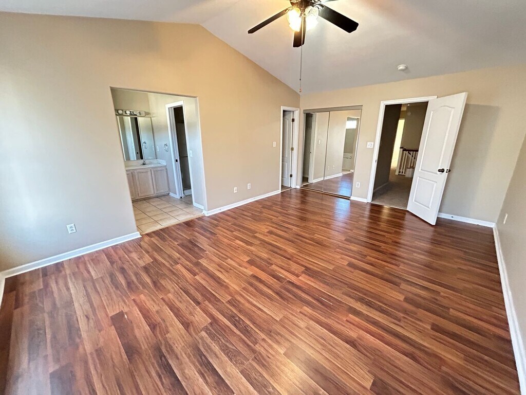 BEAUTIFUL HOME WITH LAMINATE FLOORING DOWNSTAIRS AND IN PRIMARY SUITE. NEW CARPET UPSTAIRS. PRIMARY BDRM HAS HUGE BATHROOM WITH JETTED TUB. OPEN FLOOR PLAN. FENCED IN BACKYARD. NO CATS! TENANT MUST ALLOW FOR AUTO DEDUCT FROM CHECKING FOR RENT.
