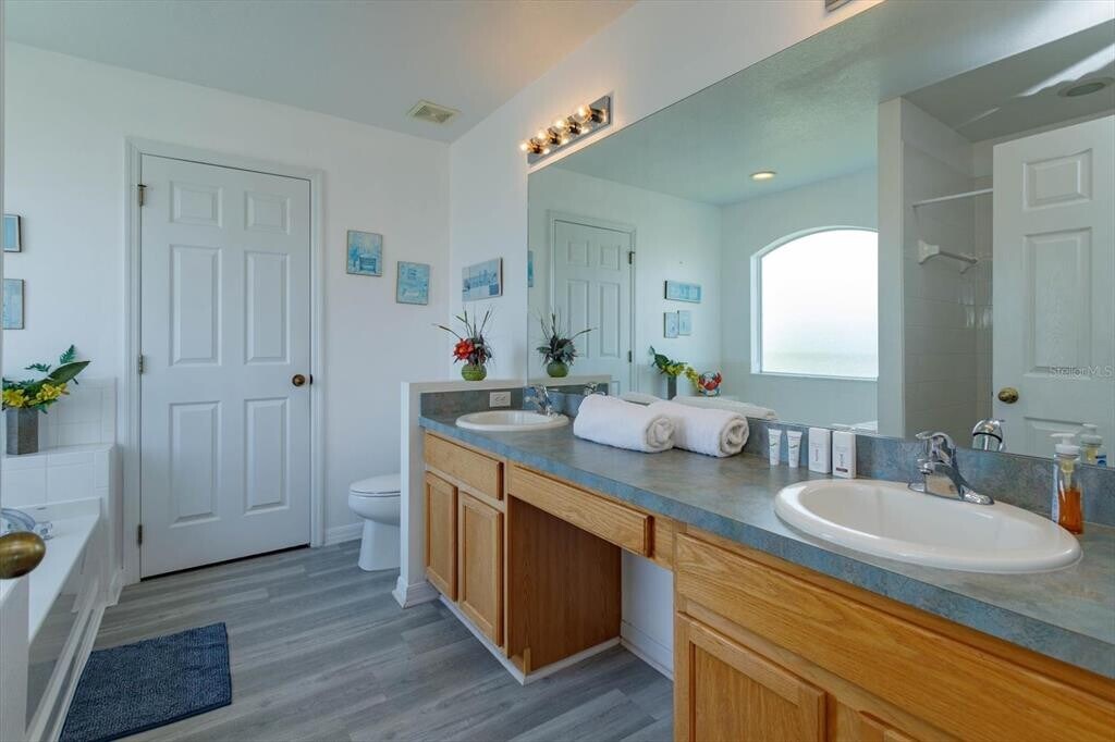 Welcome to this beautifully maintained pool home featuring 4 bedrooms and 3 full bathrooms. The open-concept layout offers a generous living space that flows seamlessly into the kitchen and dining areas—ideal for both everyday living and entertaining. Available optionally fully furnished with tasteful décor throughout. Upstairs,the large primary suite includes a private en-suite bath complete with a garden tub,separate shower,and plenty of space to unwind. One bedroom is conveniently located on the ground floor and features sliding glass doors that open to the patio,along with a nearby full bathroom—perfect for guests or multi-generational living. Step outside to your private covered patio and soak in the stunning Florida sunsets by the sparkling pool,all while enjoying tranquil views of the surrounding fairways. Located in a sought-after golf community offering a full-service clubhouse,restaurant,bar,and views of the driving range. Just minutes from major airports,Disney,Legoland,Posner Park Mall,excellent dining options,scenic parks,and top-rated medical facilities. Don’t miss the chance to make this exceptional home yours—schedule a private showing today!