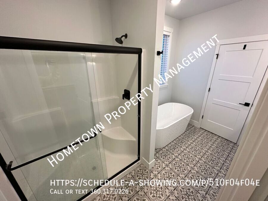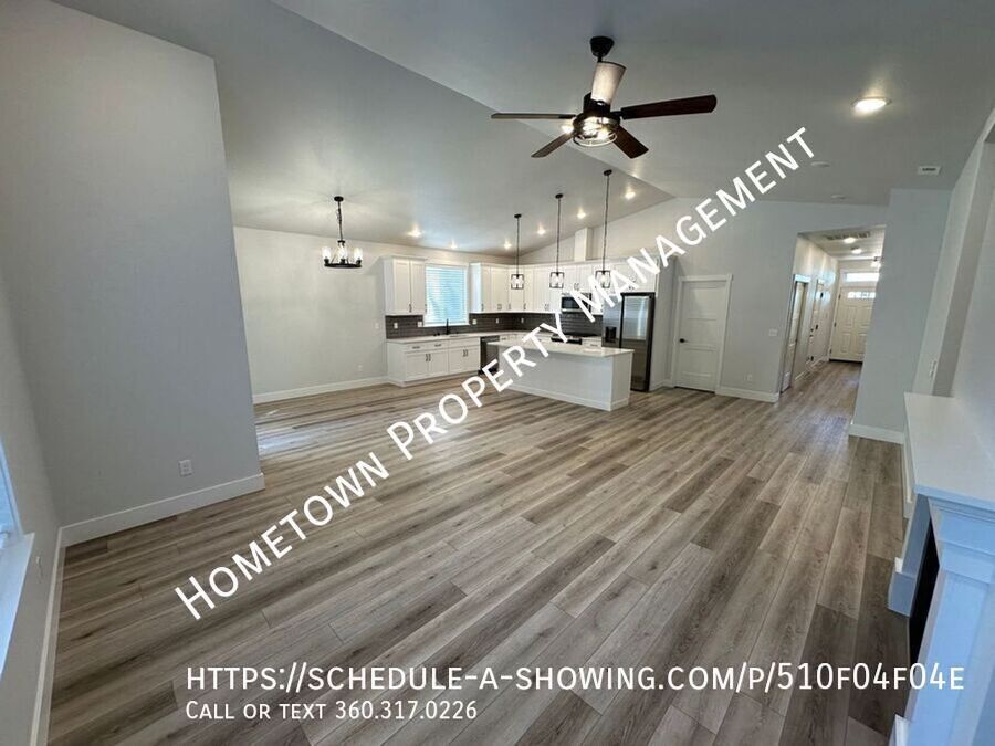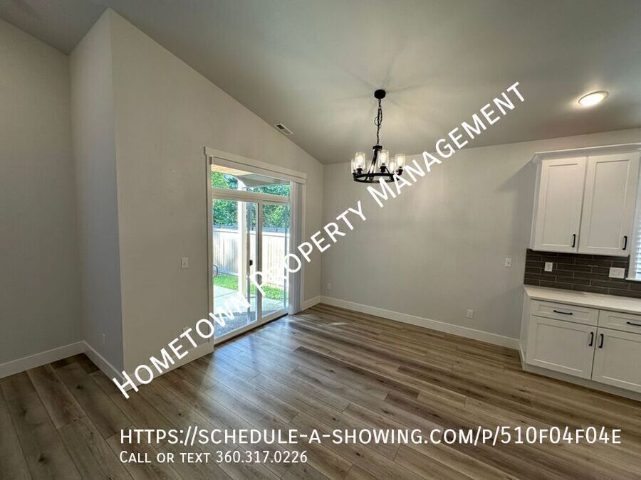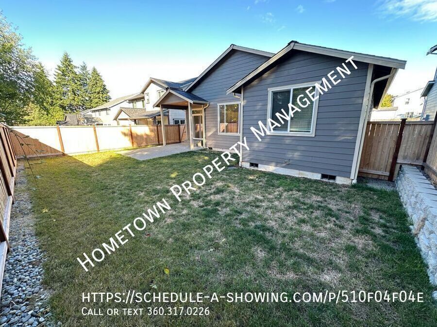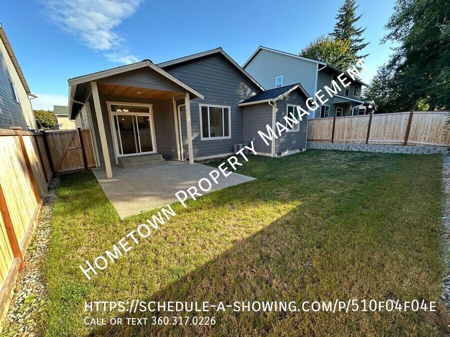 Be the first to live in this gorgeous new home in the Olympia School District. High end features throughout, with quality construction and attention to detail. Gourmet kitchen with white millwork, high quality stainless steel appliances, gas range, built in microwave, dishwasher and side-by-side refrigerator. Beautiful lighting and fixtures with plenty of cabinet and counter space. The kitchen is open to the spacious family room which is complete with a gas fireplace, vaulted ceilings and laminate flooring. The open floor plan and chefs kitchen lends itself to entertaining and the sliding door off the family room leads to a fenced backyard. Covered front porch. Custom blinds have been ordered and will be installed as soon as received. One story rambler with 3 spacious bedrooms and 2 full bathrooms, 1854 sq. ft. Primary bedroom with relaxing 5 piece en suite including contemporary soaking tub, step in shower, dual sinks and large walk in closet. This house boasts a spacious deck and patio perfect for outdoor entertaining, as well as a fenced backyard for added privacy. The 2 car garage provides ample parking space. You're going to love the huge laundry room with lots of cabinets and a folding counter. with washer/dryer hookups. Gas heating, heat pump, and air conditioning, this home has everything you need for comfortable living. Don't miss out on this wonderful opportunity to make this house your home! **NO SMOKING - NO PETS - NO ROOMMATES** 12-month minimum lease. Great location, close to parks, shopping, and area amenities. 25 minute commute to JBLM. To schedule a no contact showing, call/text , or use the link below: