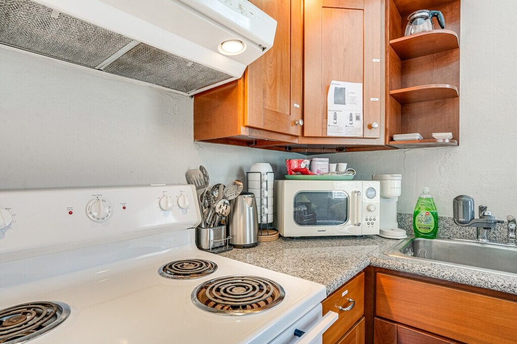 Feel at home in this 1-bedroom, 1-bath apartment in Alameda, situated near popular attractions, sandy beaches, and quiet golf courses. Please note that this is a 2-story apartment, and stairs are required to enter and to access the bedroom, full bathroom, and all living spaces on the 2nd floor. This apartment features a smart TV, books, a dining island, and a shared backyard. The kitchen is equipped with a refrigerator, microwave, stove/oven, a Keurig coffee maker (starter coffee provided), an electric kettle, cooking basics, and dishware/flatware. You'll also find free Wi-Fi, electric heating, ceiling fans, towels and linens, trash bags and paper towels, complimentary toiletries, a hair dryer, and hangers. Garage parking is available for 1 vehicle, and free street parking is available on a first-come, first-served basis. Pets are welcome with a $50 fee. Experience the best of the Bay Area with ease from this centrally located apartment. Let your furry friends roam free in the fenced-in yard while you whip up dinner on the gas grill. Walk to local green spaces and public transportation. This property features 5 exterior security cameras that record video and audio when motion is detected. The homeowner lives on-site, in a separate unit with a separate entrance, and shares the backyard. This property runs on a septic system; it is critical no items (feminine products, floss, food, toys, etc.) other than toilet paper be flushed down the toilet. Smoking, events, parties, and large gatherings are prohibited. Guests must be at least 30 years old to book. Includes a laptop-friendly workspace. [SI]