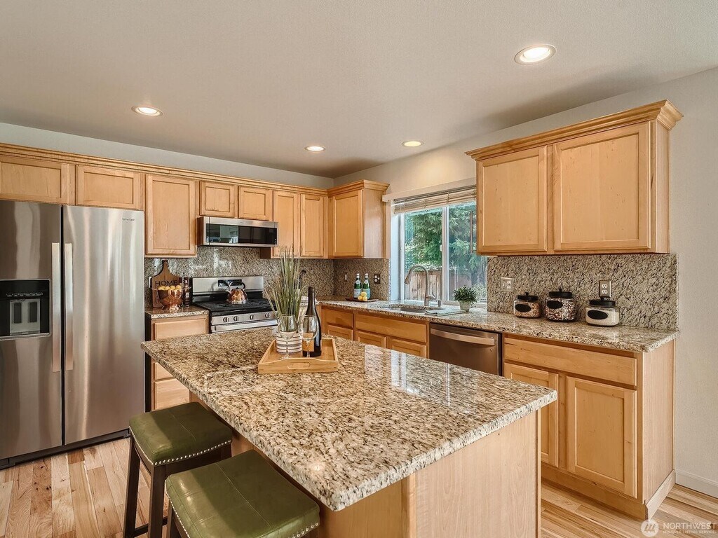Bright and spacious 3-bedroom home located on a large lot in Renton’s desirable Liberty Ridge community. This open-concept home features an upgraded kitchen with granite countertops, stainless steel appliances, abundant cabinetry, and a gas range. Upstairs, a generous bonus den/loft offers flexible space ideal for a home office, media room, or play area. The oversized primary suite includes an en-suite bathroom with dual vanities and a large walk-in closet. A roomy utility/mudroom provides additional pantry and storage space. The attached two-car garage includes storage shelves for added convenience. Additional features include a gas fireplace and heat pump for efficient heating and cooling year-round. The fully fenced backyard offers terraced garden space and an extended patio, perfect for grilling and outdoor entertaining. Enjoy living in a welcoming community with parks and play areas, conveniently located in the Renton Highlands with easy freeway access. Please note: Operating a daycare or any other home based business at this property is not permitted. Terms: First month’s rent of $3,395 and a refundable security deposit of $3,395 due at move-in. Small and medium-sized dogs considered on a case-by-case basis with an additional refundable pet deposit. No smoking. Please email for a private viewing.