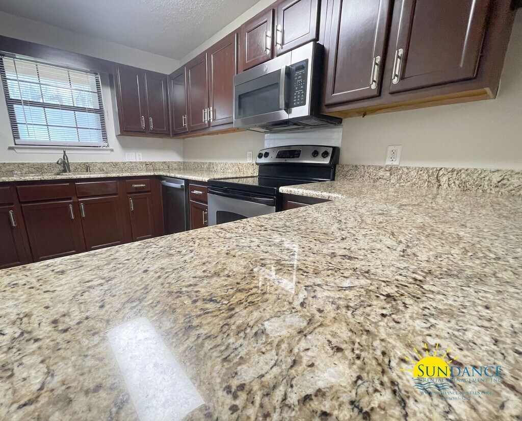Welcome to your dream home by the water! This exquisite 2-bedroom, 2-bathroom condo is perfectly situated in Garnier's Cay Phase II, Shalimar, offering convenience to shopping, dining, and the nearby, sugar-white beaches and emerald green waters. With brand new carpet and LVP installed, and new ceiling fans throughout, this residence is a must-see for those seeking luxury and tranquility. Revel in culinary delights in the modern kitchen adorned with stainless steel appliances, granite countertops, and a convenient breakfast bar with visibility to the spacious living/dining area. The dining room flows seamlessly into the expansive living area, where its vaulted ceiling creates an open-concept space perfect for both relaxing and entertaining. Oversize sliding glass doors fill the room with natural light and offer picturesque water views of Garnier’s Cay, enhancing the welcoming atmosphere. Your roomy primary suite awaits, featuring his & her's closets, oversize sliding glass doors with 365 nights per year of sunsets over the water, a dual vanity, a luxurious jacuzzi tub, and a separate shower for the ultimate spa-like experience. Discover a versatile additional bonus/office space that can be tailored to suit your needs—whether you’re seeking a peaceful home office with inspiring views or a cozy reading nook, this intimate space provides the perfect retreat and offers access to the scenic deck. A spacious second bedroom with a generous closet and its own full ensuite bathroom ensures comfort for family or guests. Additional conveniences include a laundry enclosure with doors and washer and dryer hookups for your ease and added tidiness, an inside storage room with easy access from the deck,The expansive deck serves as a gateway to the charm of Garnier's Cay, offering direct access to the all-new private dock. Perfect for enjoying serene water views or launching a day of boating and water activities. For boating enthusiasts, optional access to a boat slip is available for an additional $50 per month. Parking includes an extended-length single-car garage with attic storage and an additional outdoor parking space for added convenience. The HOA maintains the lawn for year-round manicured greenery, and Small pets are accepted with $250 per pet non-refundable fee + $50 admin fee (Subject to owner approval). Smoking is not permitted on the premises, and HOA rules and regulations apply. This stunning waterfront condo offers a blend of comfort, style, and breathtaking scenery. Take advantage of this unparalleled opportunity to make this exquisite property your new home! In addition to the rental amount, all Sundance Rental Management residents are enrolled in the Resident Benefits Package (RBP) for $25.00/month which includes liability insurance, credit building to help boost the resident’s credit score with timely rent payments, and much more! The benefits can be found on our website under Tenant FAQ.