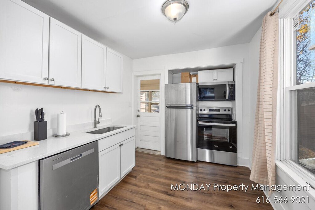 Experience comfortable living in this spacious 1,500 sq ft 2-bedroom, 1-bathroom apartment at 263 W Muskegon Ave, Muskegon, MI. Fully furnished 1–2 bedroom unit in the heart of Muskegon’s Historic District! This spacious main-floor apartment features a large living room with sectional + TV, a bright dining room (or flex 2nd bedroom), an updated kitchen with stainless steel appliances, and a roomy furnished bedroom. Enjoy the sunny enclosed front porch, hardwood floors throughout, and convenient onsite laundry. Off-street parking included. Located steps from downtown Muskegon, Hackley Park, museums, restaurants, and entertainment. Move-in ready and perfectly situated for comfort and convenience. 263 W Muskegon Ave is a charming multi-unit historic property located in the heart of Muskegon’s vibrant downtown district. This well-maintained building features classic architecture, spacious layouts, hardwood floors, and abundant natural light throughout. Units include updated kitchens...