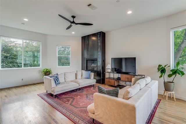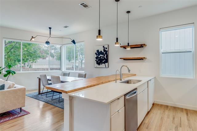 Discover a one-of-a-kind modern townhome in the heart of East Village, expertly designed by the acclaimed Marek Architecture. This 3-story end unit offers an exceptional blend of style, functionality, and privacy with access to the new The Central development just around the corner which will offer acres of parks, shops, and restaurants. Flooded with natural light, the open-concept corner unit layout features 2 bedrooms, 2.5 bathrooms, and exquisite white oak hardwood floors throughout the main living areas. The gourmet kitchen is a chef’s dream, showcasing a 10-foot live-edge ash wood island, stainless steel appliances, a Bertazzoni range, wine fridge, walk-in pantry, and all appliances, including the washer, dryer, and refrigerator, are included with the home. The primary suite offers a luxurious retreat with a custom closet for effortless organization. Additional highlights include a fenced front yard with no-mow turf and an oversized 2-car garage with extra storage space and a versatile bonus area at the entry—ideal for a home office, storage, or a sitting area. Situated in the vibrant East Village neighborhood, this townhome offers unbeatable proximity to the best of Knox Henderson, Lower Greenville, West Village, and Uptown and The Central. Modern luxury, thoughtful design, and an enviable location make this townhome truly one of a kind. Don’t miss your chance to experience it for yourself!