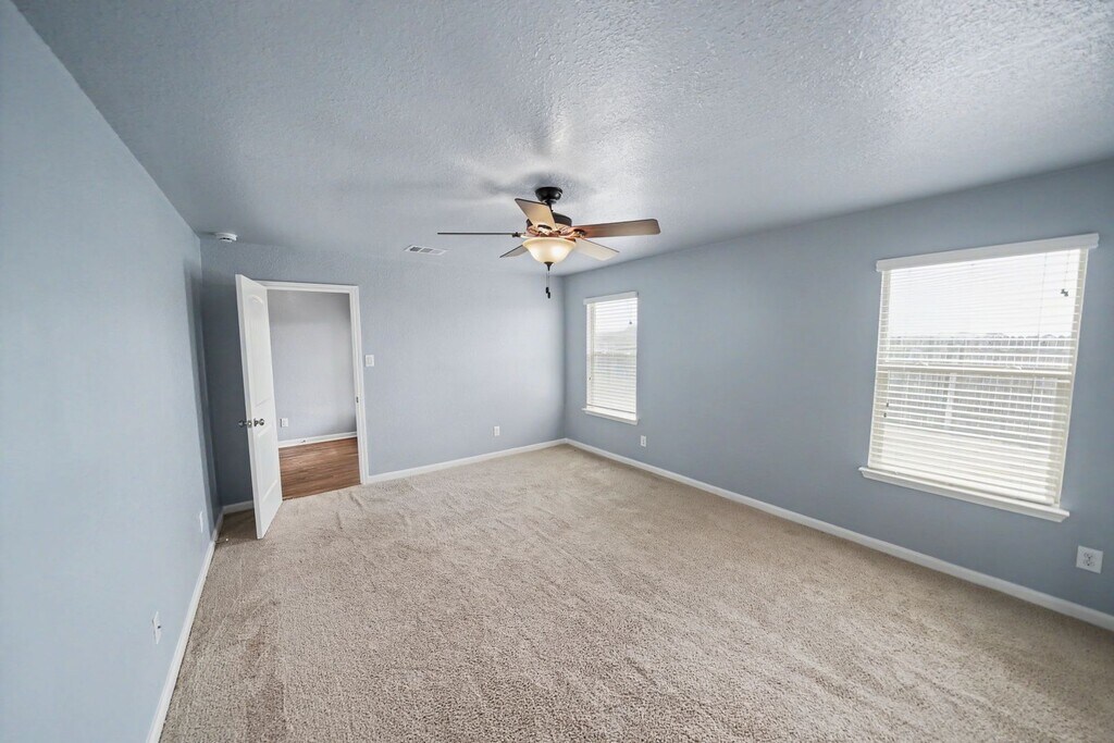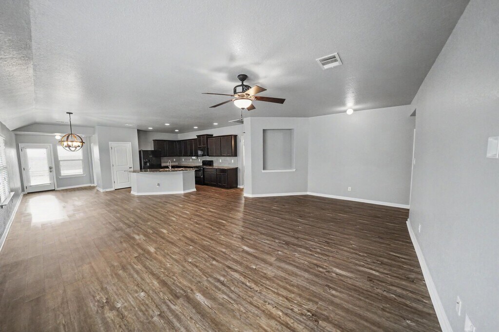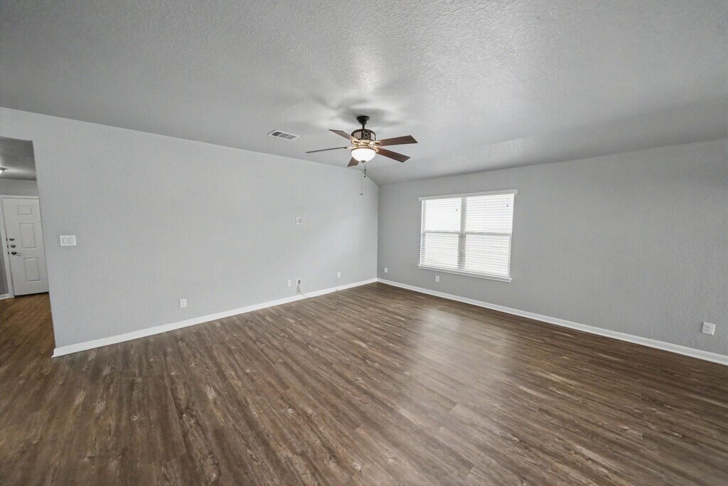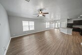 Beautiful single-story home now available in the growing Augustus Pass community of New Braunfels. This well-designed 4-bedroom, 2-bathroom home offers an open-concept floorplan complemented by durable vinyl plank flooring throughout the main living areas and upgraded lighting fixtures for a modern touch. The spacious island kitchen is a standout feature, showcasing granite countertops, gas cooking, abundant cabinetry, a large pantry, and a breakfast bar that seamlessly opens to the family room-perfect for both everyday living and entertaining. A centrally located secondary bedroom provides flexibility and can easily serve as a private guest suite, home office, or game room. The primary suite is thoughtfully positioned for added privacy and features a full ensuite bathroom with dual vanities, a relaxing garden tub, a separate shower, and a generous walk-in closet. Step outside to enjoy the covered patio and fully fenced backyard-ideal for weekend BBQs and outdoor gatherings. Don't miss the opportunity to enjoy this beautifully updated home in one of New Braunfels' fastest-growing neighborhoods. ***This property will be owner-managed.***
