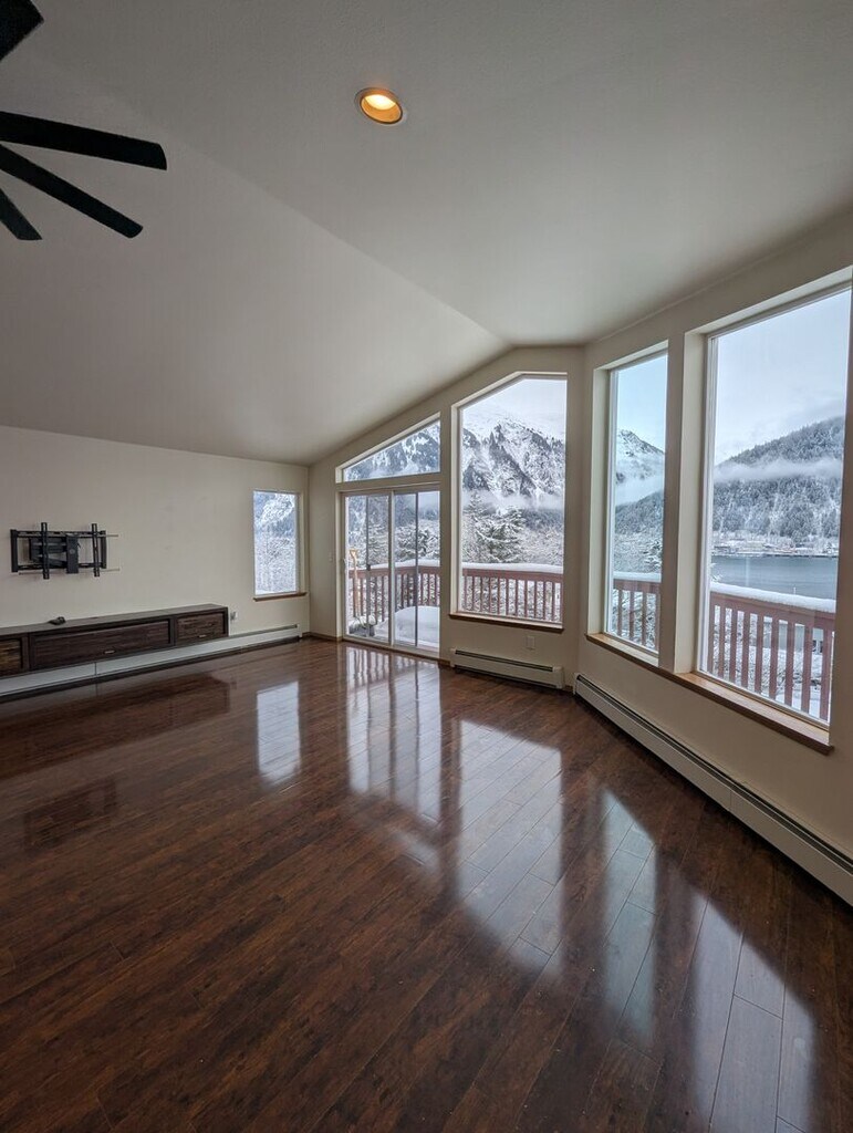 This well maintained end-unit townhome is ready to call home. Enjoy panoramic views of downtown Juneau, Gastineau Channel and Mt. Roberts. This home boasts 3 spacious bedrooms, a recently remodeled full bath downstairs and a half bath off the main living room. The kitchen is open to the living area and comes equipped with newer stainless steel appliances and a large kitchen island. Hardwood floors throughout the home. Enjoy abundant natural light via the large windows and vaulted ceiling. The property has a lovely garden area with thoughtful landscaping as well as extra parking both in front of and behind the home. Has a 1 car heated garage with a bonus lofted space for extra storage or workspace. Owner pays: Water/Sewer and Trash Service. Pets considered on a case by case basis. Security deposit required. Looking for a long term tenant.
