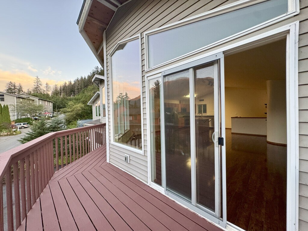 For rent: this charming 3-bedroom, 1.5-bath end unit townhouse with a garage in West Juneau is move-in ready. The spacious living area is perfect for relaxing, and the kitchen includes all necessary appliances. Imagine relaxing on the deck while enjoying panoramic views of downtown Juneau, Gastineau Channel, and Mt. Roberts—an ideal spot to watch ships roll in or fireworks! The vaulted ceilings and large windows provide plenty of natural light. Tenants only need to pay for internet, propane, and electricity, while all other utilities (water, sewer, garbage) are included. Enjoy the convenience of a washer and dryer in your unit. Off-street parking and a garage are available, offering added comfort and ease. Located in a prime area, this townhouse is just a short walk from bus stops and trails, providing easy access to public transportation and daily amenities. Experience the comfort and convenience of this lovely home! Applications are required before showing. Apply online at or . Rent is $2850, with a security deposit required. Pets are restricted, and smoking is not permitted, 12-month lease.