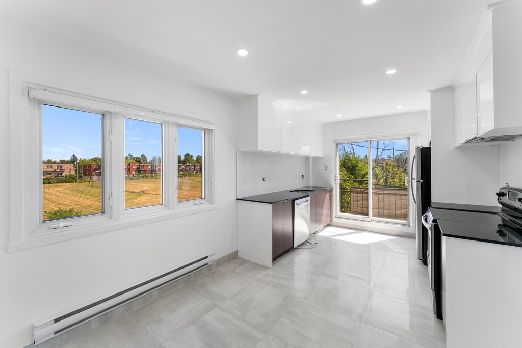 One month Free with a lease on 2700, bringing the rent to 2475/month. Fully renovated 3-bedroom 1.5-bath corner unit with no neighbors. Security recording and monitoring using a multi-camera system around the dwelling. Comes with free Wifi Internet, brand new appliances (Washer/Dryer/stove/Fridge/Dishwasher/with an AC unit with heat. Highlights of this location: * 3 mins walk to St-Laurent indoor Olympic sports complex * ?5 mins walk to ST-Laurent Library * ?7 mins walk to Place-Vertu Mall for groceries, banking, Pharmacy, Canadian Tire, shopping, restaurants, and Lufa Farm * ?12 mins walk to IKEA * ?Jump off the Appliances included such as Washer/Dryer/Fridge/Dishwasher/Stove --> 3 mins walk from the International Sports Complex. --> 8 mins walk to Bombardier Plant 1. --> 3 mins walk to Secondary School. --> 18 mins walk to IKEA Montreal --> 20 mins walk to Côte-Vertu Metro --> 10 mins walk to Place Vertu Shopping Center --> 6 mins walk to the library --> 7 mins walk to the Police Station Easily accessible to work within Saint-Laurent --> 8 mins walk to Gold's Gym. Features: Free Guest Wireless Wifi (Optional) EV charging available (Optional) Interior Car Parking Available