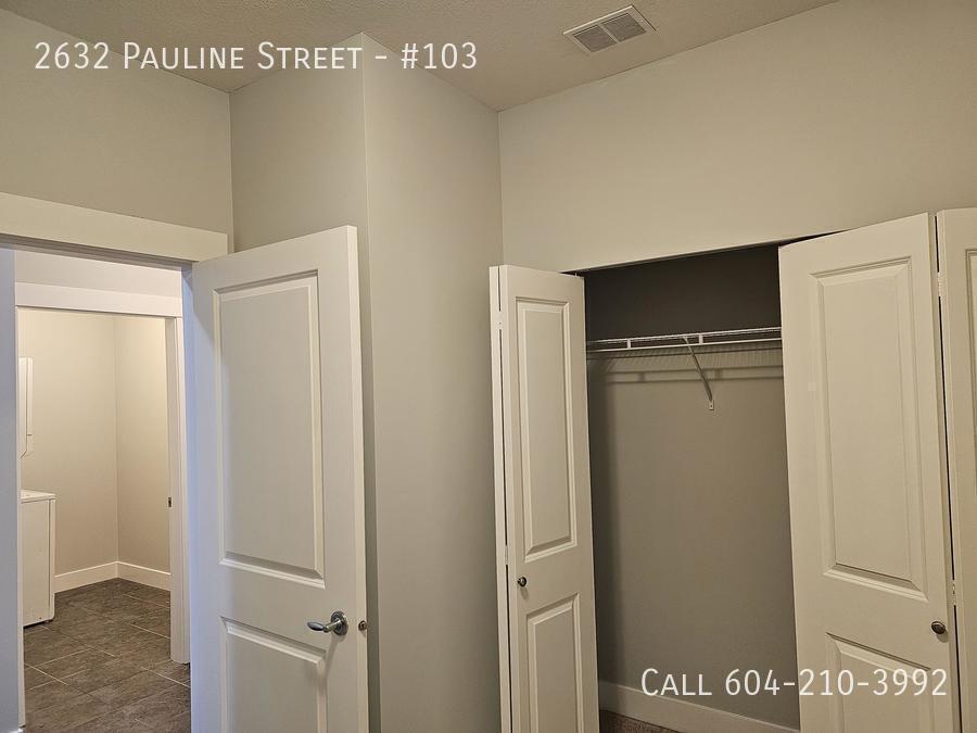 Pets: No Pets Please No Smoking Utilities: Not Included Available: Now One Year Lease Security Deposit: Half Months Rent Updated condo in historical downtown Abbotsford, great for shopping and many eateries. Open concept living, dining and kitchen area with handy built in desk. Primary bedroom with ensuite and large walk in closet. Second bedroom has a closet, no window and is a large space. A full laundry room. Lovely morning sun on your raised patio. Small pet will be considered.
