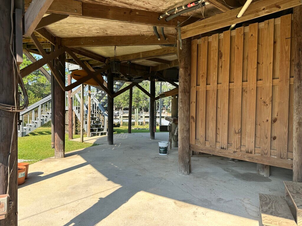 Escape to Your Waterfront Tiki Paradise!Welcome to your dream coastal retreat, the Tiki House--a boater's and angler's paradise! Nestled along a serene canal with direct access to Escambia Bay, this charming waterfront property offers 101 feet of prime water frontage, perfect for fishing, boating, and endless outdoor adventures.Property Highlights: Spacious & Modern Layout: This elevated two-bedroom, one-bath home features a 360-degree wraparound porch, ideal for soaking in stunning water views and vibrant sunsets. Private Tiki Bar: Entertain guests in style at your very own Tiki Bar, perfect for tropical gatherings or relaxing evenings by the water. Boater's Dream: Launch your boat or jet ski from your private ramp and fish right off the dock. The 5+ foot deep canal