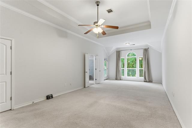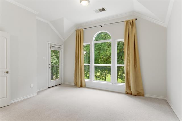 Description: Immaculate townhome in GATED community on premium golf course lot. Engineered wood floors in living room and dining room. Island kitchen with granite counters, stainless appliances, smooth cooktop & bkfst bar open to large living area. Study tucked behind double doors. Master with jetted tub, separate shower, dual sinks, WIC and balcony overlooking yard and golf course.FRESH Neutral tones PAINT, extensive crown molding, decorator lighting and energy efficient features for low utility bills. Close to dining, shopping and less than 7 miles from DFW airport. And wrought iron fence with views of golf course.