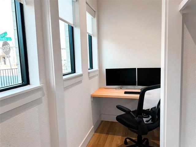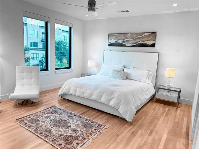 Discover modern luxury in this three-level condo. With sleek design and top-quality finishes, this home is a haven of style and comfort. Entertain & relax on the rooftop patio with panoramic views. Large windows ensure the home is always bright and welcoming. Inside, you'll find 10-foot ceilings and smooth white oak hardwood floors. The kitchen is a highlight with top-notch Bosch appliances, stylish backsplash, white cabinetry and a special AGA range, along with a handy walk-in pantry. The ground floor has a study space, a mudroom, and room for two cars in the garage. The main floor offers a simple powder bath and a relaxing living space. Upstairs, there are two bedrooms, each with its own bathroom, and a utility room for convenience. Plenty of parking and storage space are available. Located close to popular spots, this condo makes modern living easy and enjoyable. Washer,dryer&refrigerator will stay. Landlord will pay for HOA. Water&front yard maintenance is included. A must See