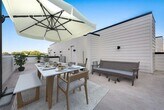Introducing a three-level condo that epitomizes modern luxury living. With contemporary design and high-end finishes, this residence offers an exceptional experience. Enjoy a private outdoor oasis with a fenced-in turf yard and rooftop space. Abundant large windows fill the home with natural light, complementing the bright and airy ambiance. The spacious floor plan features 10-foot ceilings and white oak hardwood flooring throughout. A chef's dream kitchen includes a walk-in pantry and complete with Bosch appliances and AGA designer range.. The first level offers a study area, mudroom, and 2-car garage. The main floor features a powder bath and a comfortable living area. The third floor provides privacy with two bedrooms, ensuite baths, and a utility room. Additional highlights include ample parking and storage. Conveniently located near amenities and attractions, this meticulously crafted home offers contemporary living at its finest. Don't miss this opportunity!