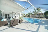 This is a VACATION RENTAL only. Owner will not consider an annual rental. Weekly rentals permitted. Villa Geraldine is a completely renovated 3-bedroom,2-bathroom home located in the coveted SE area of Cape Coral. From here,you are minutes away from the Caloosahatchee River - A perfect location for the avid boater. The living room offers plenty of seating and a flat-screen TV,along with a desk area for those who may need to get some work done while you're here. There is also a comfortable sitting area off the entryway. You'll feel like you're the top chef when in the fully equipped kitchen. With stainless steel appliances,a wine cooler and an island complete with a breakfast bar allowing seating for two,it has everything you will need to create your delicious masterpieces. The formal dining room is located off of the kitchen and offers seating for six guests. Villa Geraldine has a split floor plan. The master bedroom is located off the dining room and features two Queen-size beds and a flat-screen TV. Enjoy the pool views through the private sliders that access the lanai. The attached master bathroom will make you think you've stepped into a spa,with its oversized,pebbled walk-in show and double-sink vanity. There are two additional guest bedrooms on the opposite side of the house. One offers two Twin-sized beds and sliders to the lanai,and the other has two Full-sized beds. They both share the second bathroom that doubles as a pool bath and includes a double-sink vanity and shower/tub combination. There are flat screen tv's in every room! Enjoy that bright Florida sunshine out on the spacious lanai! With Eastern exposure,the early birds will see the beautiful sunrises the area has to offer. Enjoy your meals poolside with the provided grill. The lovely sheer accent curtains and the flat-screen tv will have you practically living outdoors. There is also a boat dock available with a lovely seating area and firepit even a boat lift available for tenant use. Book Villa Geraldine now! You deserve your Florida dream vacation.