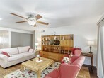 2 beds + 2 baths 1,162 Sq Ft of living space. Open floorplan with bedrooms on the opposite sides of the home, hardwood floors, natural skylight in living room, gourmet kitchen with appliances included. Spacious master bedroom with their own master bath and walk-in closet. Central AC/heater. Convenience of a 2-car attached garage with laundry room. Backyard is fully secure with fencing that allows the homeowner privacy for entertaining, gardening and having pets. Enjoy resort-style amenities including a pool, spa, 18-hole pitch and putt, and 9-hole executive par-3 golf course, recreation rooms, game and card rooms, workshops, a library, and a fitness center.