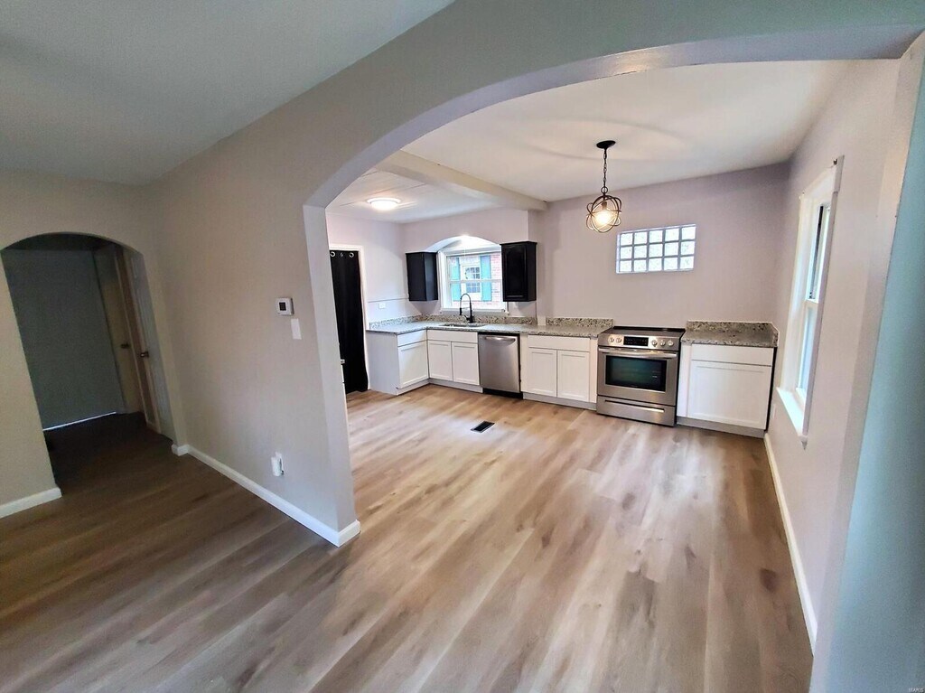 Welcome Home to 2634 Benton St — Renovated 2-Bedroom Single-Family Rental Located just a half block from picturesque Wilson Park in the most desirable area of Granite City, this beautifully renovated 2-bedroom, 1-bath single-family home blends modern finishes with comfortable living. Built/renovated in 2024 and spanning approximately 980 square feet, the property offers thoughtful updates, a private fenced yard, and easy access to St. Louis for commuters seeking convenience and charm.Interior Features & Layout Step inside to freshly painted walls and gleaming hardwood floors that flow throughout the main living spaces. The open living area provides a welcoming layout ideal for everyday living and entertaining. Two well-proportioned bedrooms offer comfort and natural light, while the renovated full bathroom features contemporary fixtures and clean finishes. Central air keeps the home comfortable year-round.Kitchen & Appliances The updated kitchen is designed for both style and function, featuring modern cabinetry, a dishwasher, and a practical layout that makes cooking and cleanup effortless. While the home is offered unfurnished to allow you to personalize each space, the efficient kitchen and dining areas make it easy to create a setup that fits your lifestyle.Outdoor Living & Parking Enjoy a private, fenced yard perfect for morning coffee, outdoor dining, or letting pets stretch their legs. The property includes a deck or patio area that extends your living space outdoors, plus a driveway for convenient off-street parking. The neighborhood’s proximity to Wilson Park adds recreational options and scenic green space just steps from your front Amenities & Pet-Friendly Features This home is ideal for pet owners, with access to an on-site dog park and nearby park amenities that encourage an active lifestyle. The property also offers laundry hook-ups inside the unit and access to on-site laundry facilities, providing practical convenience for busy households.Location & Lifestyle Benefits Situated in a sought-after part of Granite City, the home combines small-town comfort with easy access to metropolitan amenities. Commuters will appreciate the short drive to St. Louis, while local shops, dining, and community services are within reach. The peaceful residential setting, coupled with updated finishes and outdoor space, creates an appealing retreat.Rental Details Offered at $1,350 per month, this single-family rental presents an excellent opportunity for renters seeking a modern, move-in-ready home in Granite City. For more information or to schedule a viewing, inquire today and discover how 2634 Benton St can be your next home.
