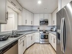 Exquisite town home with so many updates that it feels like new construction! Gorgeous views of greenbelt from LR and Master BR, plantation shutters and recessed lighting through out, tons of closets, light and bright, new paint, updated stainless appliances including a new range, upstairs bathrooms totally updated, open & flowing floor plan, dramatic fixtures and hardware, oversized 2 car garage and tranquil park with benches & walking trail directly across the street! Ultimate location close to TCU, shopping, hospital district, highways! (Includes stainless refrigerator, washer and dryer.) The owner will consider negotiating the rental rate with a 2 year lease.